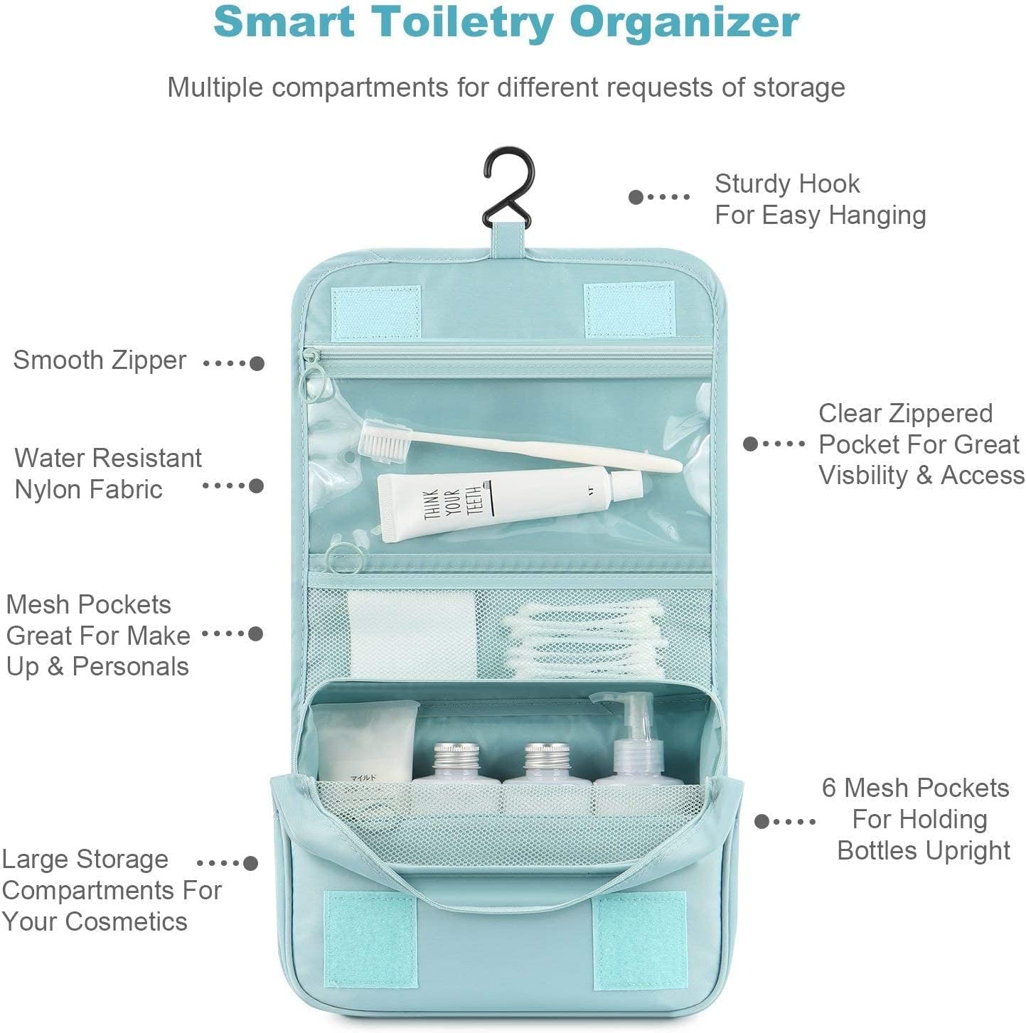 COOLBABY Travel Makeup Cosmetic Bag Shower Bags Hanging Toiletry Bag – Pouch Large Cosmetic Makeup Travel Organizer for Men & Women with Sturdy Hook, YLY029-SLS, 9.4*3.5*7.8 inches, Portable Toiletry