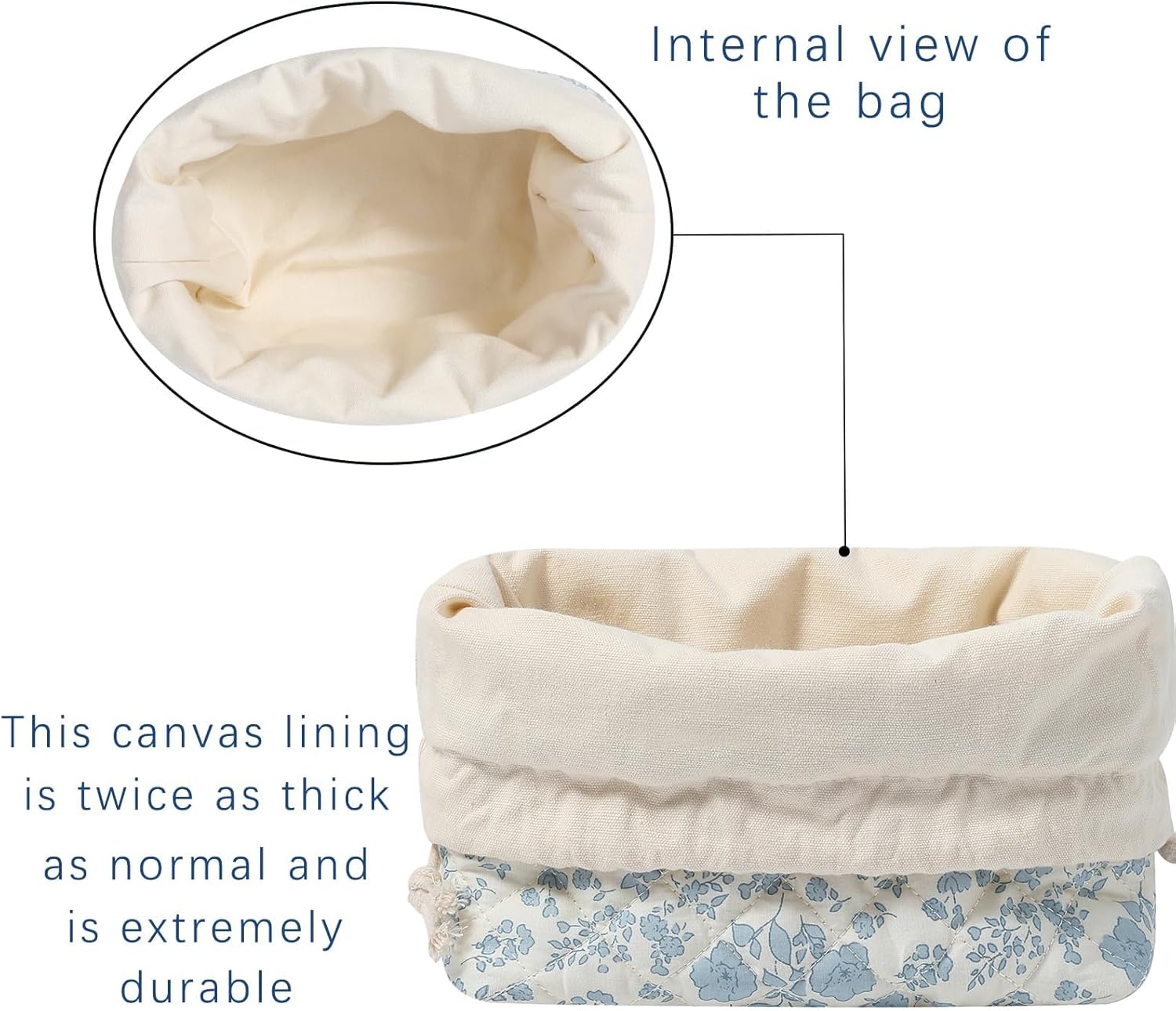 [🌸 Product Size] Measuring 6.7 inches x 6.7 inches x 4 inches, this large drawstring cotton makeup bag offers ample space to store all your essentials. Ideal for organizing makeup, skincare products, toiletries, stationery kits, watercolor pens, and more. Its unstructured design allows flexibility for holding larger or odd-sized items.