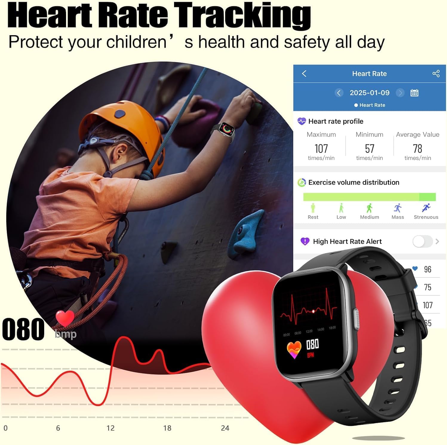 💤【 Sleep Tracking & Heart Rate Monitor | مراقبة النوم ومعدل ضربات القلب】: This kids smartwatch monitors sleep patterns & heart rate, helping parents identify sleep disturbances and improve their child’s rest. Sedentary reminders and bedtime alarms help maintain a healthy routine.
