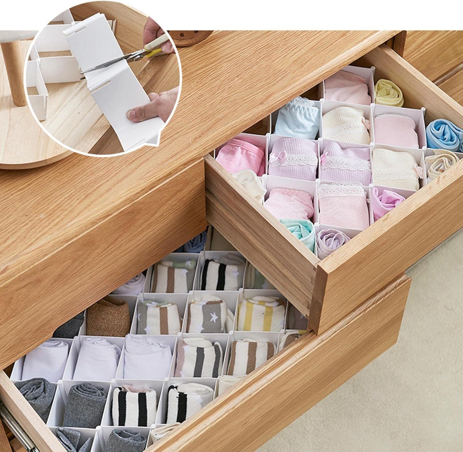 3. With multiple grids, you can store underwear, socks, or other things orderly.