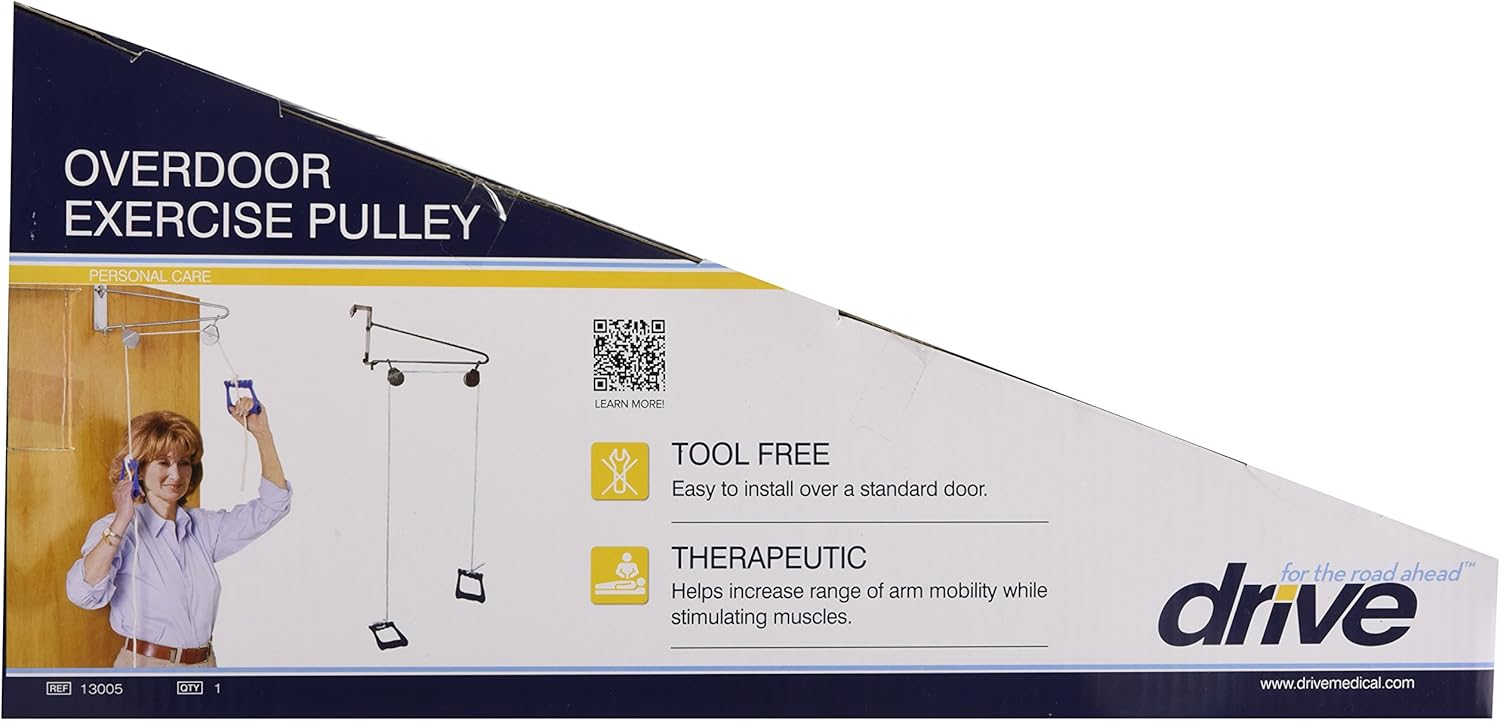 Drive Medical’s over-door exercise pulley is designed to safely and easily increase the range of motion whenever you please, be it while sitting or standing. It easily fits over a standard door and arrives complete with a door bracket, pulleys, cord, and handles. A great shoulder pulley to help with range of motion and to support physical therapy or rehabilitation.