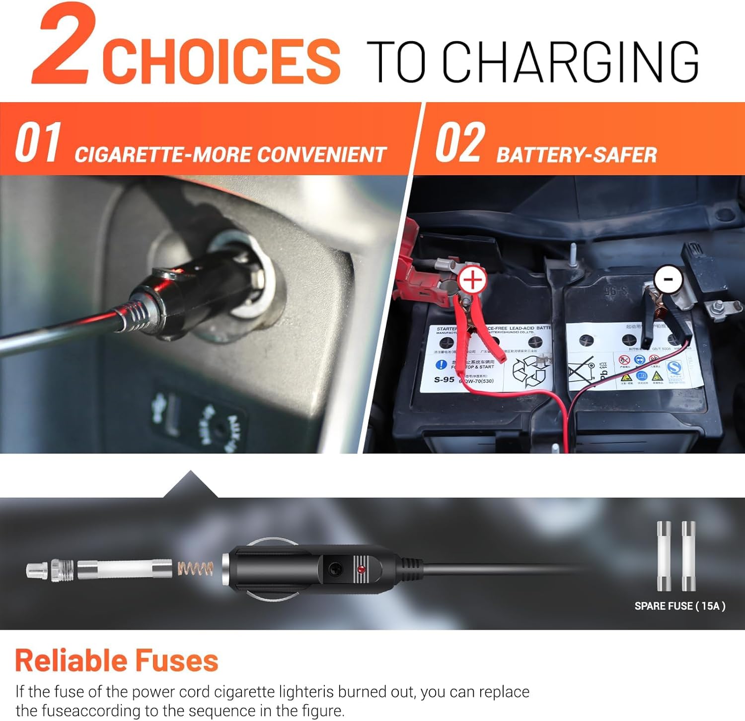 [Powerful Electric Car Jack] E-HEELP hydraulic electric car jack has the capability to quickly lift a weight of 5 tons(11200 lbs) in just 2 mins. The Emergency car kit offers two power options: cigar lighter and car battery, which are matched to most high-power engines.