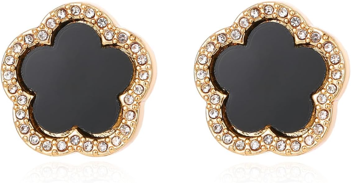 Elegant Crystal-Accented Clover Stud Earrings – Set of 2 in Black, Pink, or Green