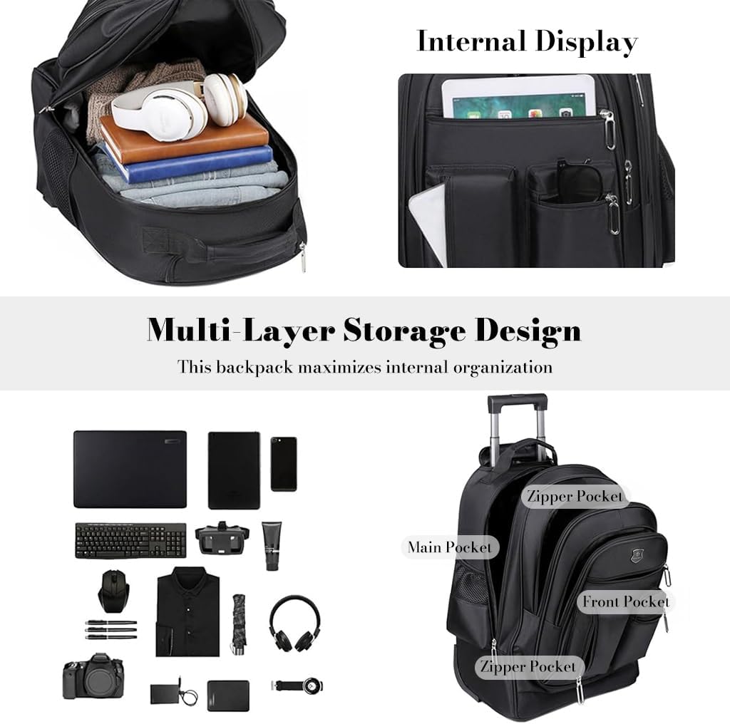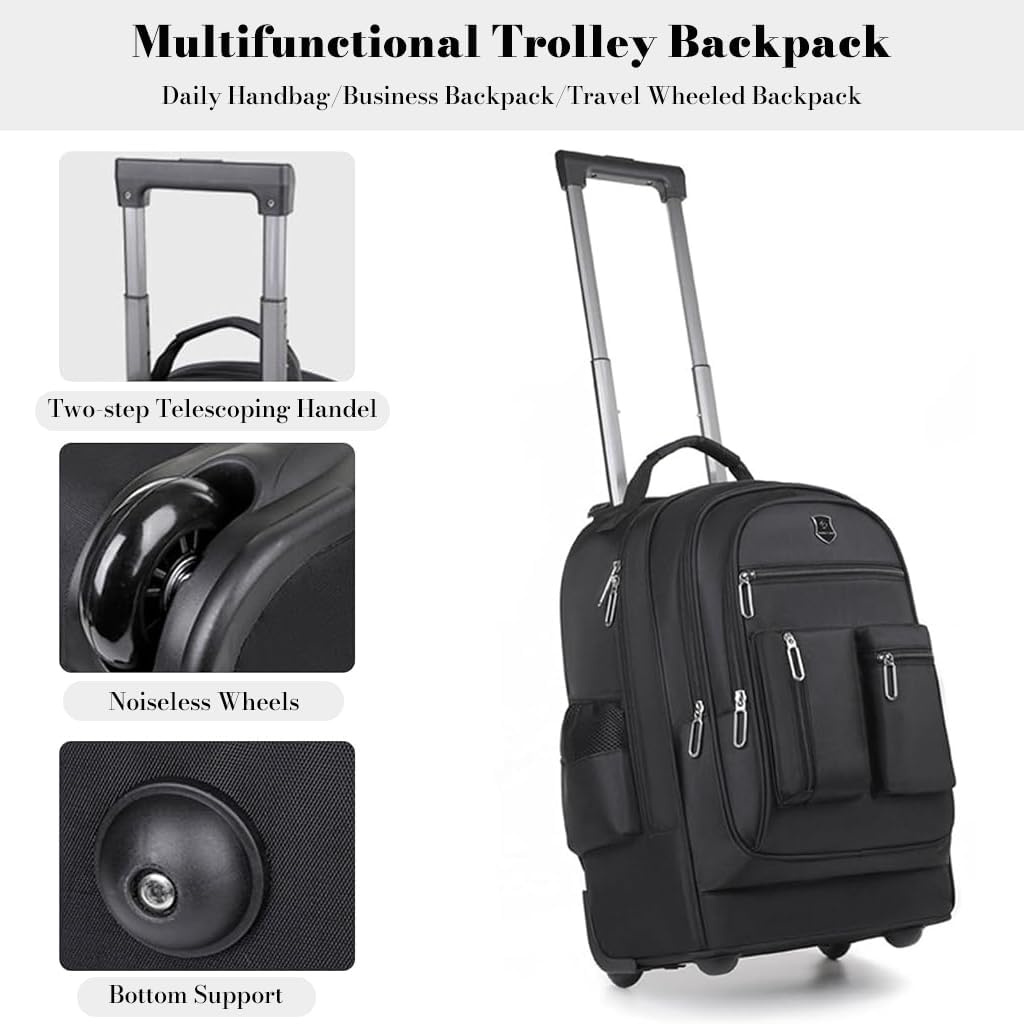【Multi-Functional Design】3-in-1 trolley backpack can be used as a rolling suitcase, laptop backpack, or business travel bag, ideal choice for work, school, and travel.
