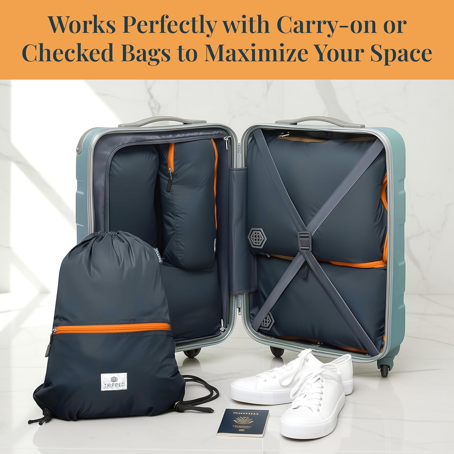 Be the first to review “Extra Large Compression Packing Cube 6 Piece Set for Travel and Check Luggage by TRIPPED Travel Gear, Grey/Orange, 15.7x11x4 inches, Travel” Cancel reply