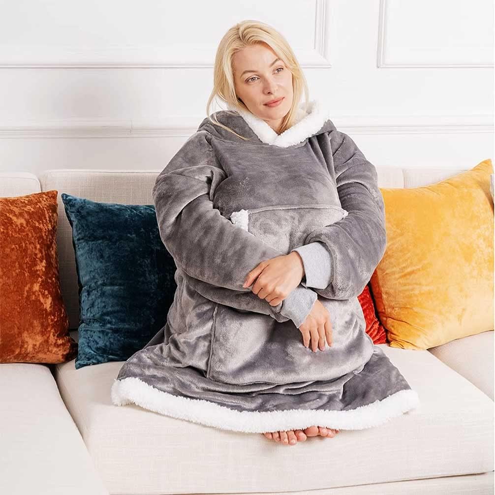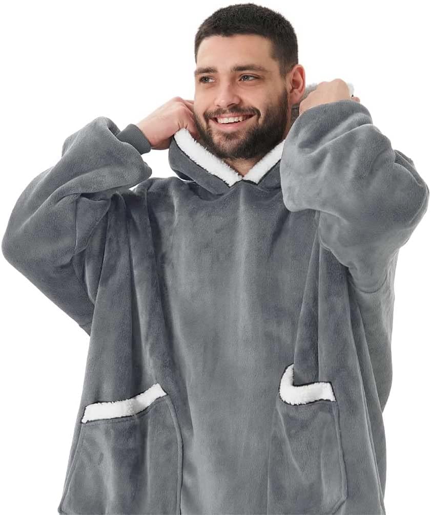 Extra Long Hoodie Blanket Sweatshirt 3XL for Women Men 1pcs, Super Warm and Cozy Big Blanket Hoodie, Wearable Flannel Blanket with Sleeves and Pocket