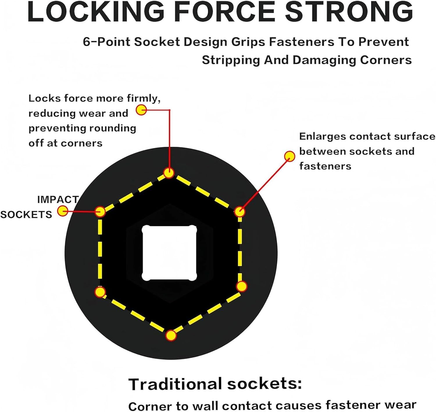 3. POWERFUL FORCE: These heavy duty sockets are designed for heavy duty, which can withstand high torsion and provide maximum force