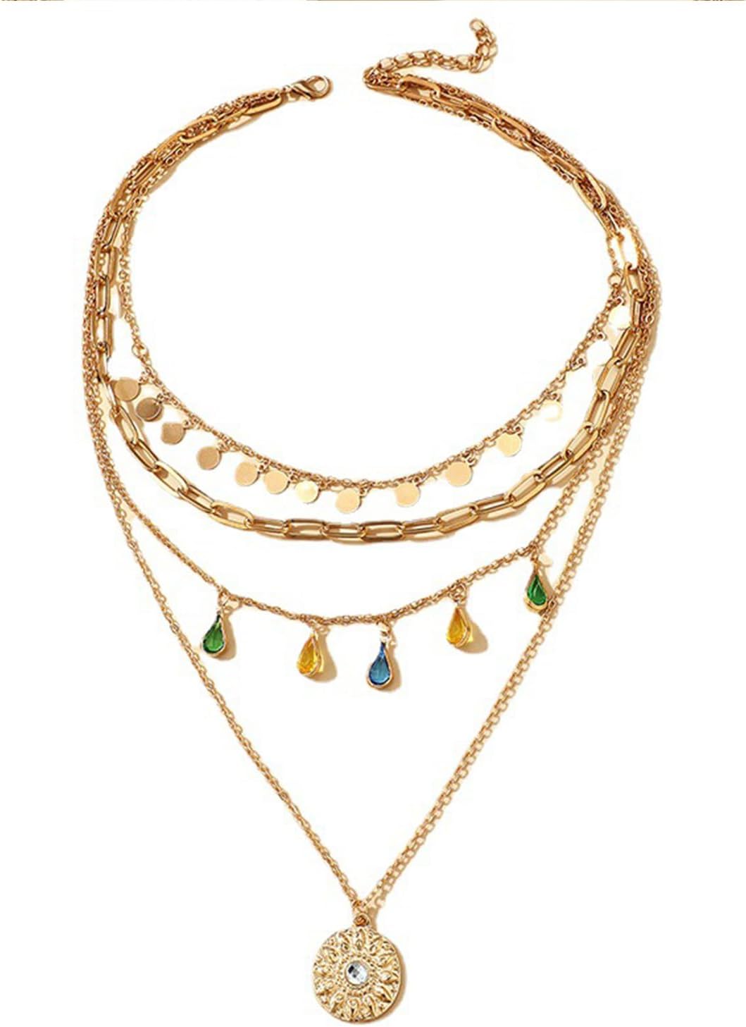Fashion Necklace Multilayer Layered Pendant Necklace for Women, Boho Chic Stackable Charm, Gift for Graduation, Friendship, Travel, Beach, or Special Occasions