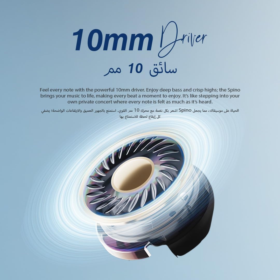 Immersive 10mm Driver and Low Latency: Feel every note with the power of a 10mm driver. Enjoy deep bass, balanced mids, crisp highs with perfect audio or video sync. The Spino brings your music to life, making every beat a moment to enjoy and ideal for music, movies, and gaming. The low-latency feature ensures that the audio syncs perfectly with the visuals, allowing you to immerse yourself without any delay.