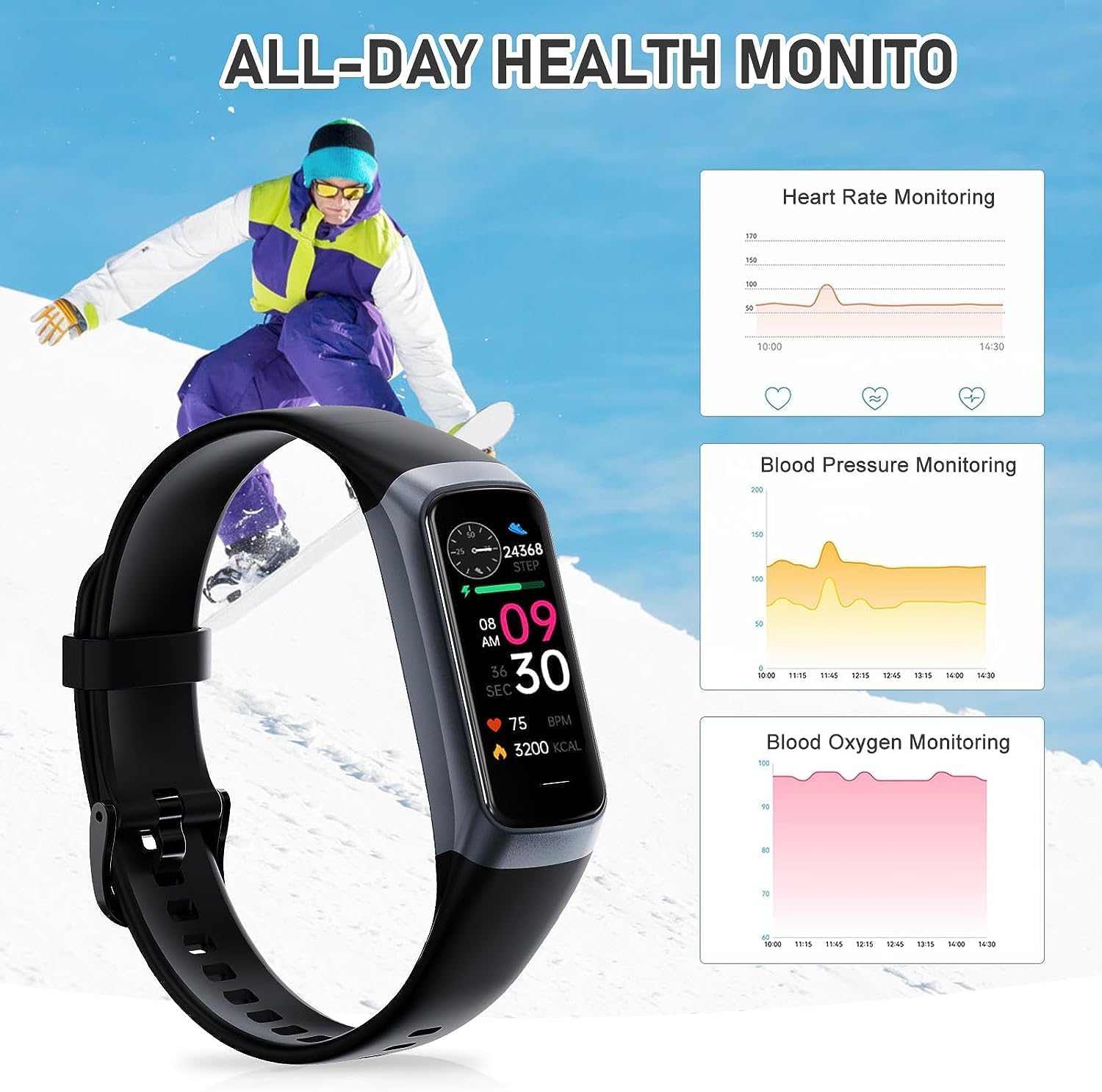 ⚫【All-Day Health Monitor】The fitness tracker watch will automatically track your real-time heart rate, blood pressure and blood oxygen throughout the day to help you better understand your health. Equipped with a high performance chipset, the fitness tracker will automatically analyze your overall sleep quality (deep/light/wake time) at night and give you a nightly sleep score in the app to help you adjust your lifestyle and make you healthier.