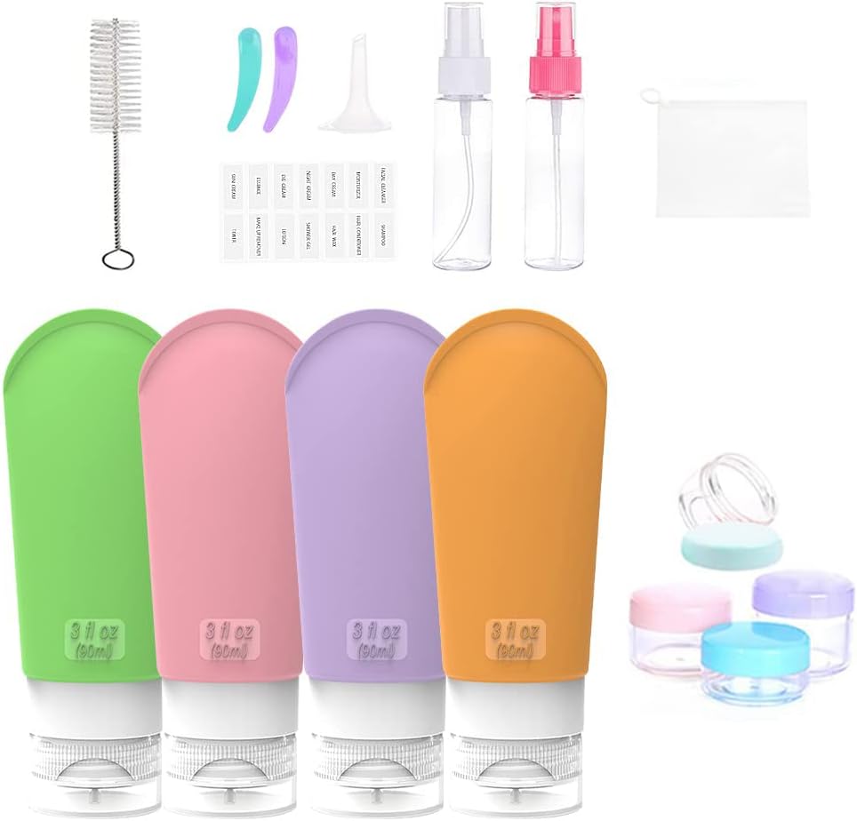 SYOSI 16 Pcs Travel Bottles Set for Toiletries, Silicone Leakproof Refillable Size Containers, TSA Approved Portable Squeezable Travel Accessories for Shampoo Body Wash (BPA Free)