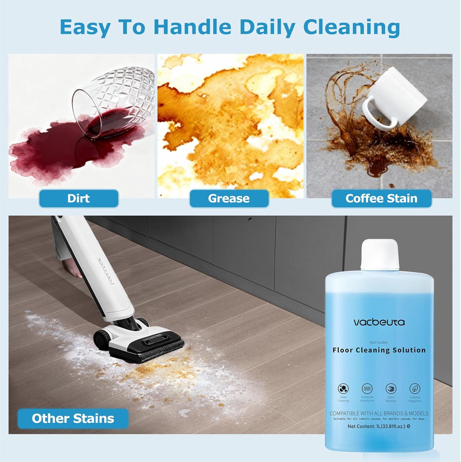 Floor Cleaning Solution Compatible with Roborock, Floor Cleaner for Hardwood, Compatible Robot Vacuums with Mopping and Wet and Dry Vacuum, 1L, 33.8 Fl. OZ