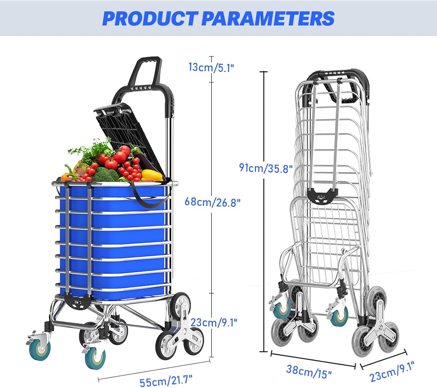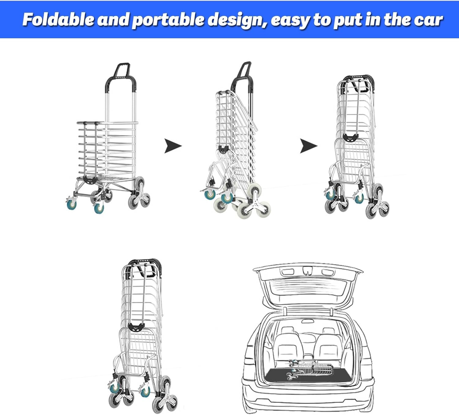 【Multifunction】Shopping bag cart has foldable wheels for you to switch between shoulder bag or expand to full size as a shopping cart.it can be used as shopping cart, grocery, sundry cart, folding cart and special trolley with wheels.