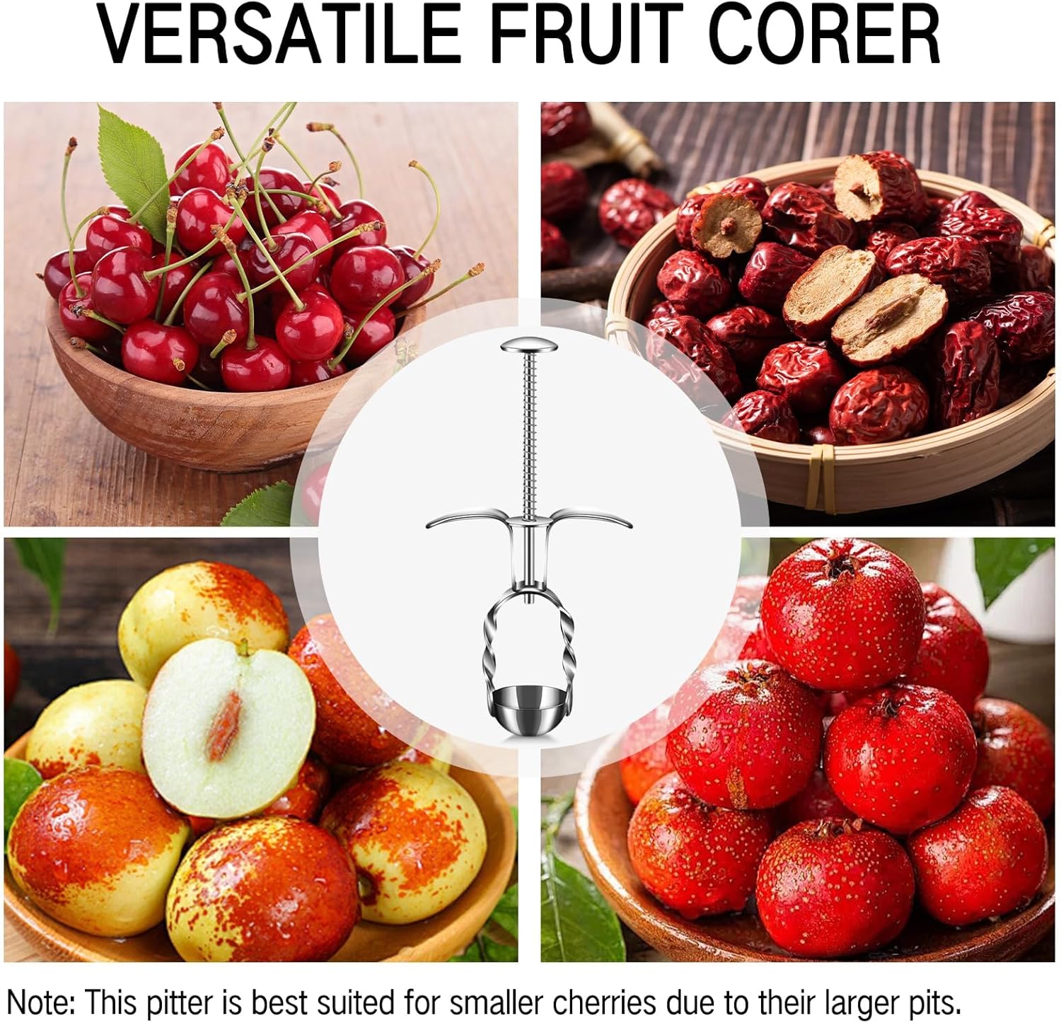🍒 Versatile Fruit Corer: This tool is designed to easily remove cores from fruits like red dates, jujubes, cherries, and hawthorns. It’s best for smaller cherries with pits less than 0.35 inches in diameter.