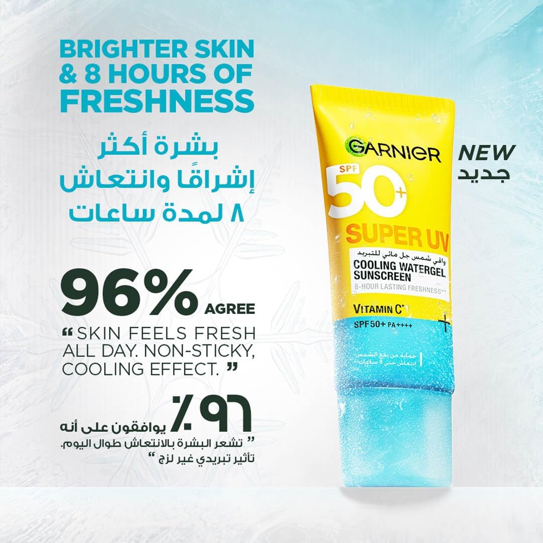 Introducing our new Super UV Cooling Water Gel SPF50+, a lightweight formula powered by vitamin C and refreshing cooling actives. This sunscreen features dual-defense technology with broad-spectrum SPF50+ and PA++++ to protect against both UVA and UVB rays. It delivers instant cooling of up to -3°C and clinically proven to provide long-lasting freshness for up to 8 hours. Suitable for all skin types, it’s the perfect combination of sun protection and skin-cooling comfort.