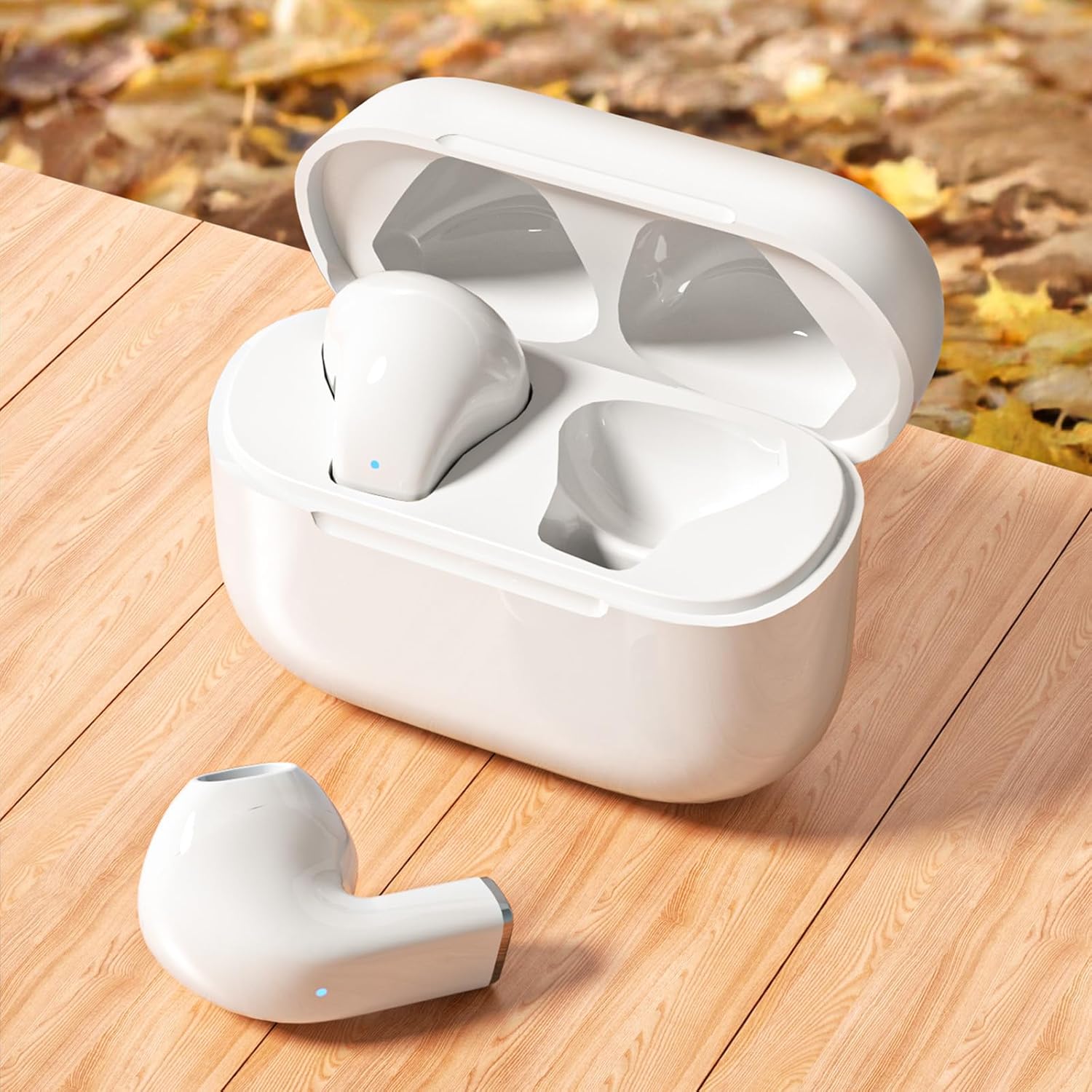 The white half in-ear wireless bluetooth earbuds give you an immersive and comfortable listening experience thanks to its sleek and lightweight design. It has exceptional sound quality and deep bass that lets you enjoy music and calls in high clarity. Thanks to modern Bluetooth technology, it ensures a fast and stable connection with smartphones, tablets and laptops. It comes with a compact and stylish charging case that provides long hours of operation, making it ideal for everyday use, while traveling or doing sports. And the half-in-ear design ensures a comfortable hold without the sensation of pressure, even after long periods of use. Combining powerful performance with a modern look, these headphones are your ideal choice for sound quality and comfort at every moment.