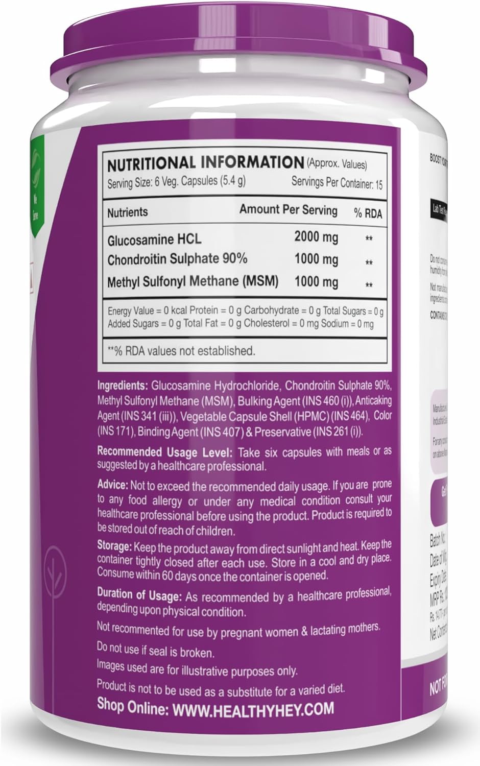 HealthyHey Nutrition Glucosamine Chondroitin and MSM for Cartilage; Joint and Bone, 90 Capsules