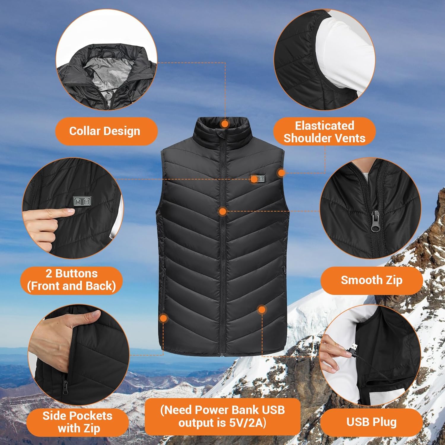 Heated Vest for Men Women, Heated Sleeveless Vest with USB Plug, 3 Temperature Adjustable, 9/13/17 Heating Zones, Thermal Vest for Hiking, Cycling (Power Bank not Included