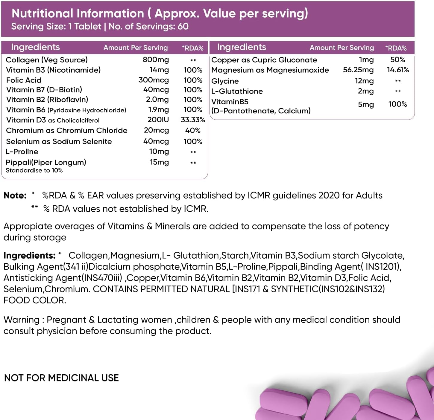Herbal max Collagen Supports Skin, Hair, Joints And Nail Health, 60 Tablets, 800mg (OHEMC60)