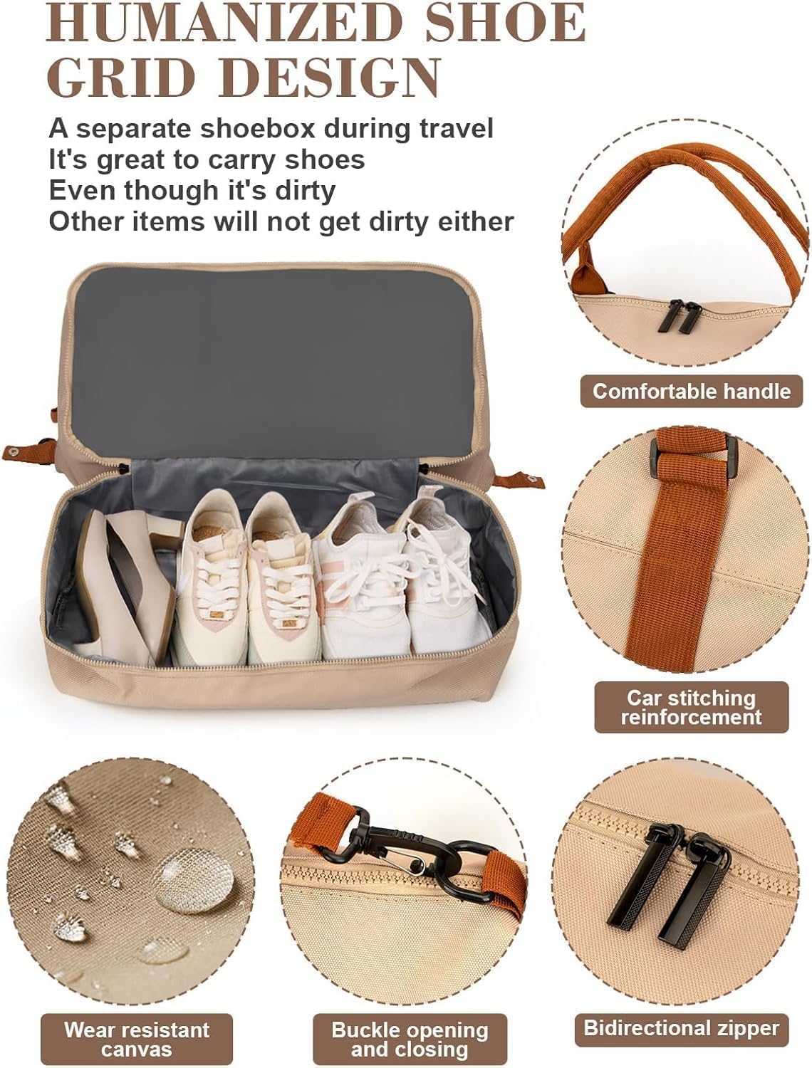 Durable Carry on Bag – The weekender bag is made of waterproof and thick fabric to protect your gears well from rain or wet.Solid straps bear the weight more than 40 pounds, The strap is soft and heavy duty, which could let your hands free, no need to worry any ripping or break during trips.