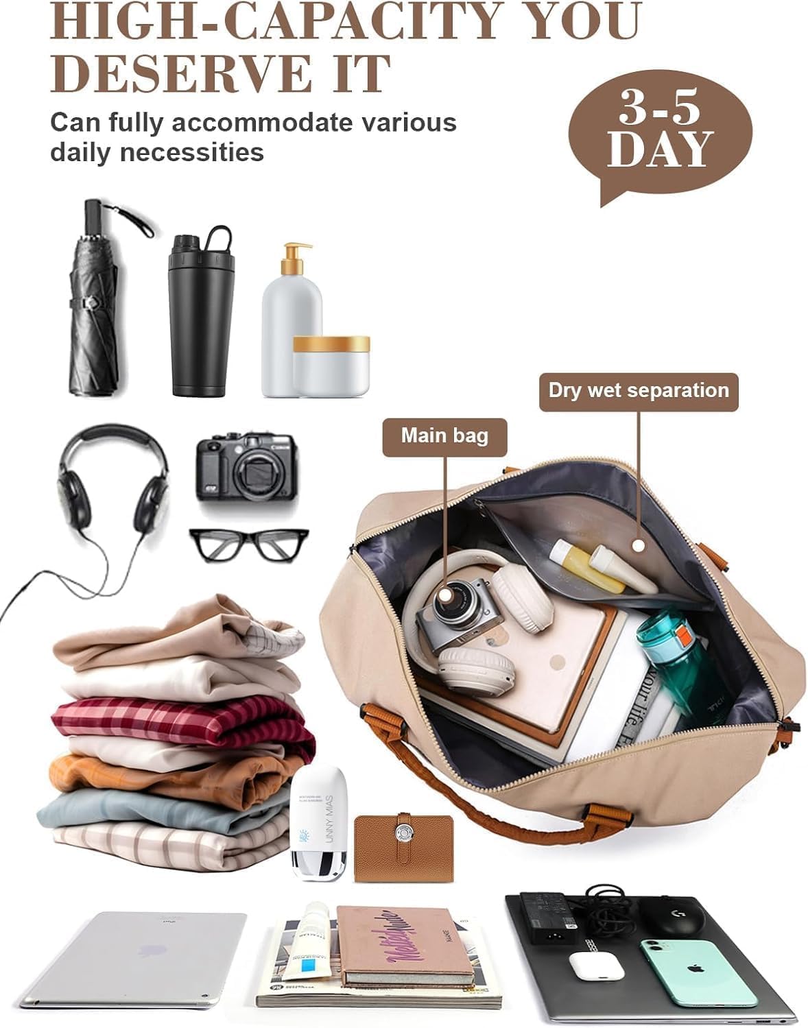 Multi-purpose Design – We could call it is travel bag,and it is gym bag too.Our weekender bags for women are perfect reliable companion for your weekend. It is perfect for use as cabin bag, Luggage airplane underseat bag, gym bag, sports bag, travel bag, weekend tote bag, swim bag, hospital bag, etc.