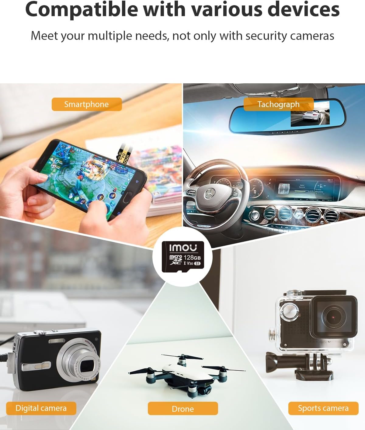 Imou 128GB Micro SD Card SDXC Memory Card Full HD Speed Up to 95/25MB/s UHS-I SD Adapter for Smartphones, Tablets, Action Cameras, Drones (128GB)