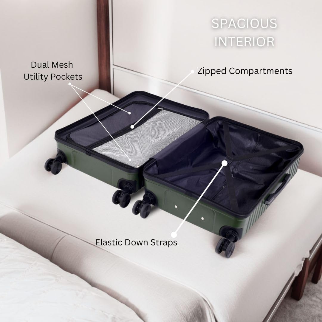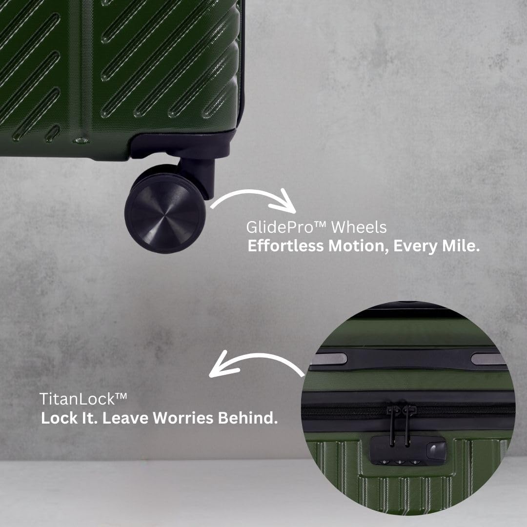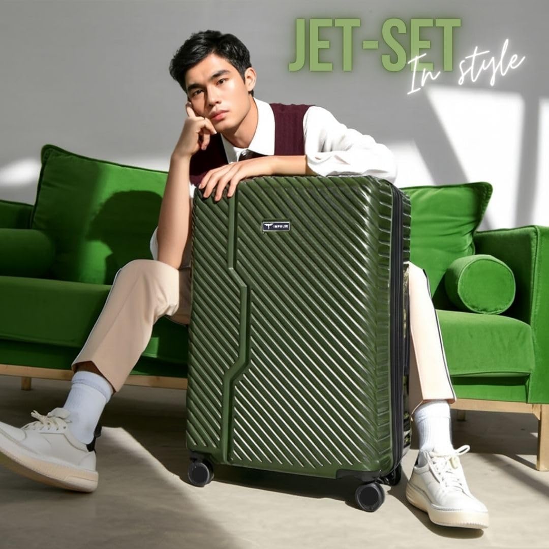 Impulse Vivid Polycarbonate (PC) Set of 3 (Cabin + Medium + Large) Trolley Bag for Travel Small Cabin Check in, Luggage Bag Travel Hard Case with 8 Wheels 360 Degree Wheeling System (Green)
