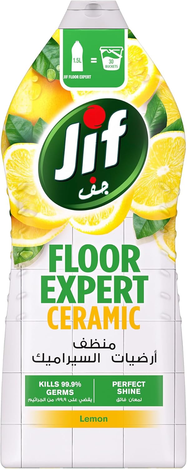 JIF Floor Expert Liquid Cleaner, Ceramic, Lemon, Kills 99.9% Germs, Perfect Shine, 1.5L