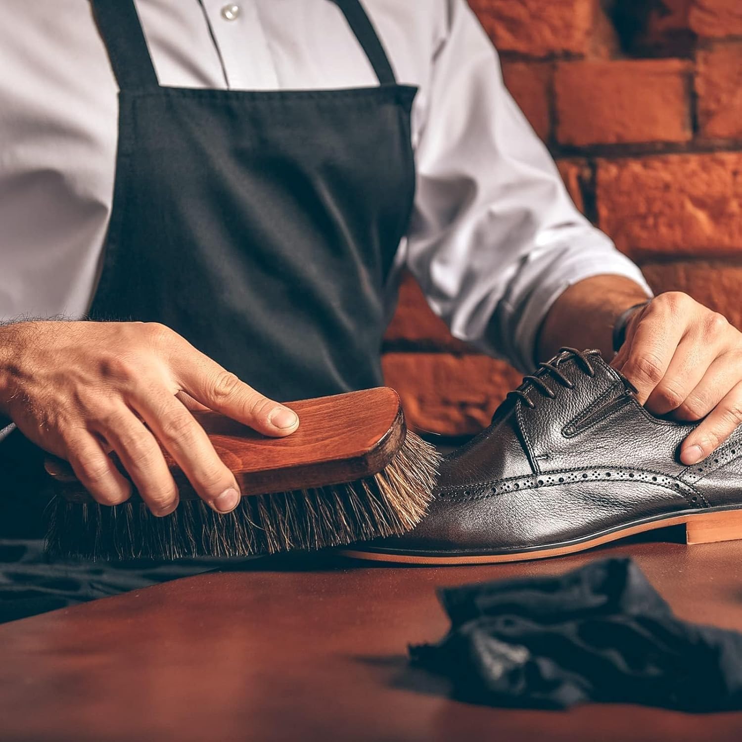 đ´ăWidely AppliedăThe horse hair shoe brush is a good care tool for leather or imitation leather products, such as shoes, boots, backpacks, wallets, car seats, furniture, etc., to safely polish what you want, well performance for a finish surface