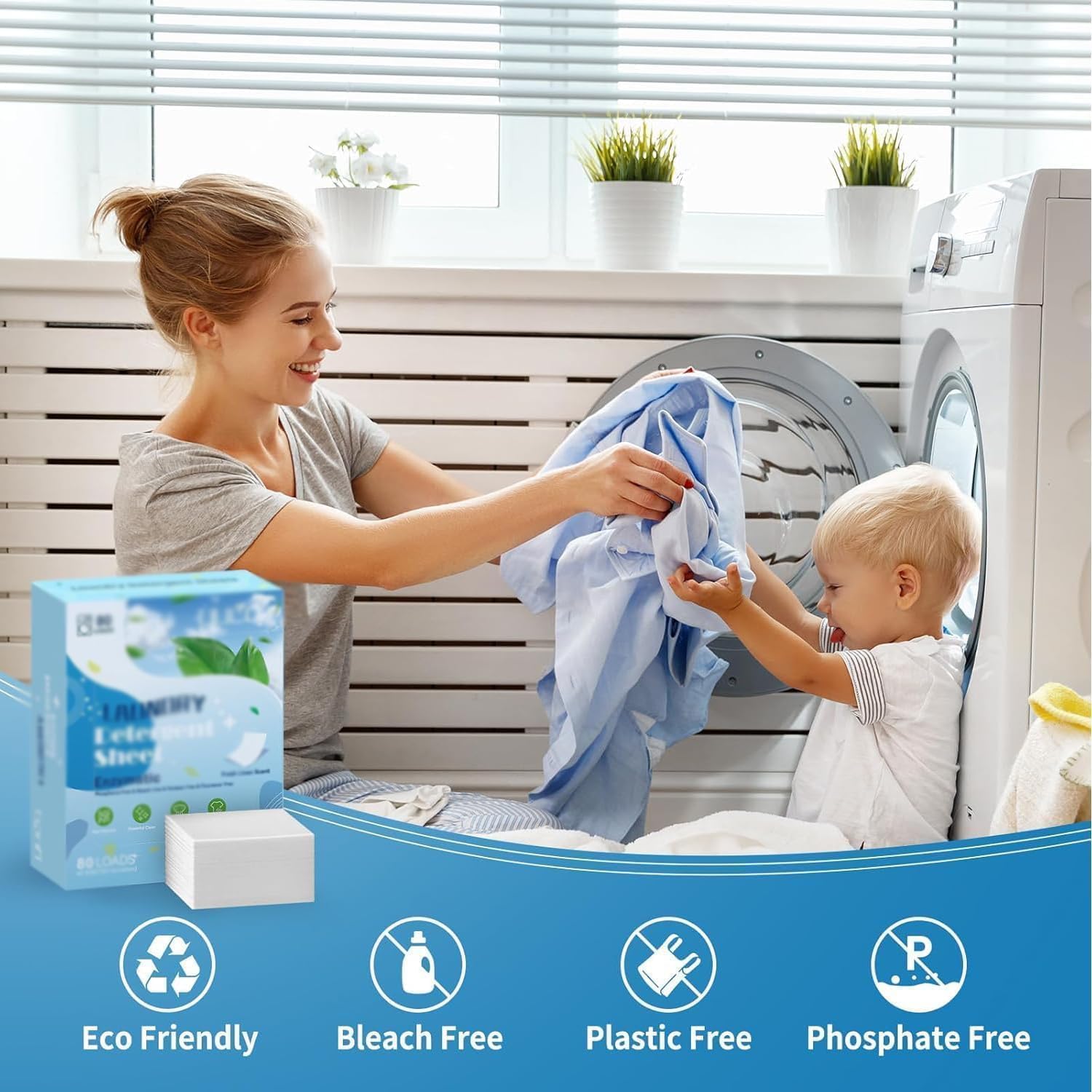 šæ ćPlant-Based Biodegradable FormulaćMade from natural plant-derived ingredients, these eco-friendly detergent sheets break down completely without harming the environment. The biodegradable formula is septic-safe and leaves no chemical residue on clothes or in washing machines.