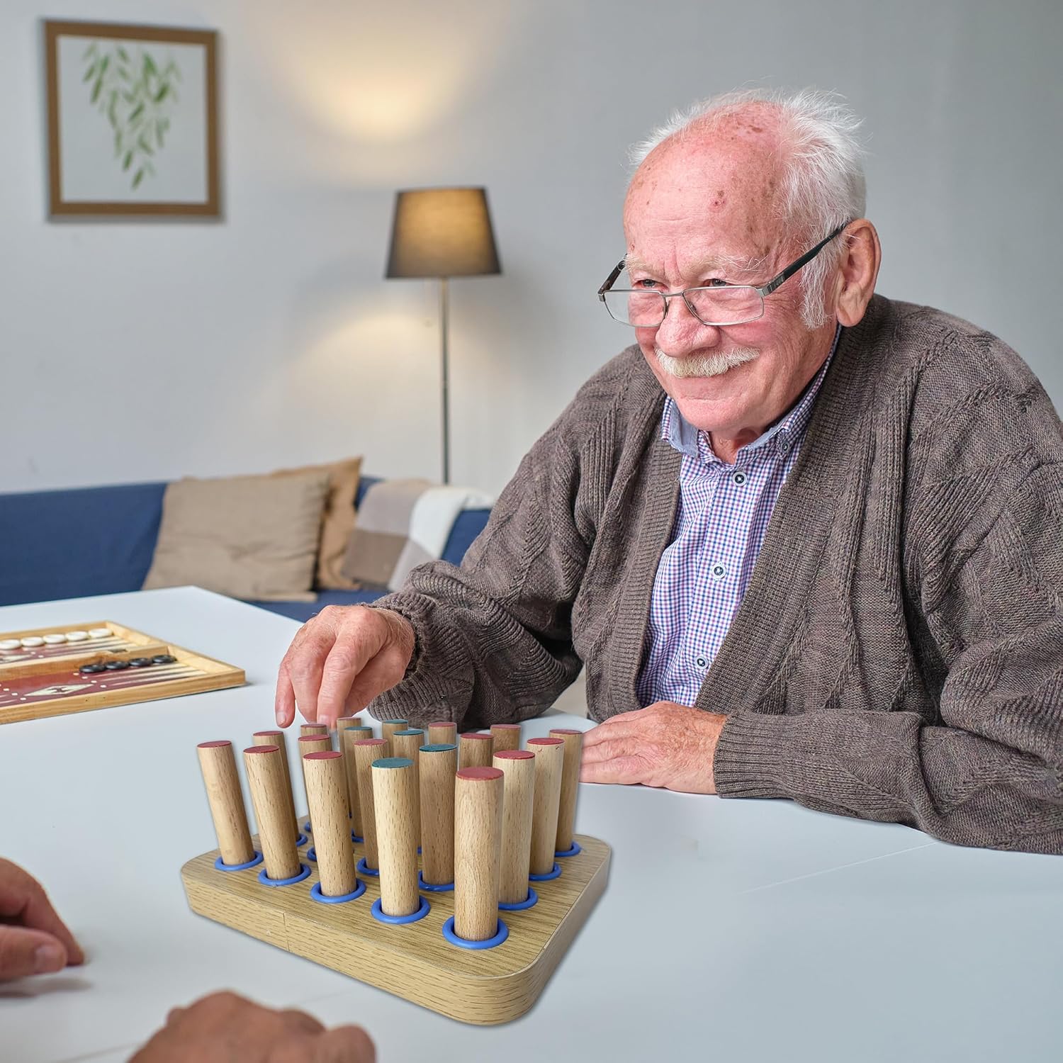 Durable and Convenient – Made of high-quality wood, the set includes 20 wooden sticks and a base plate, with exercises such as grip training, finger and forearm selection, object transfer, pinch training, and more.