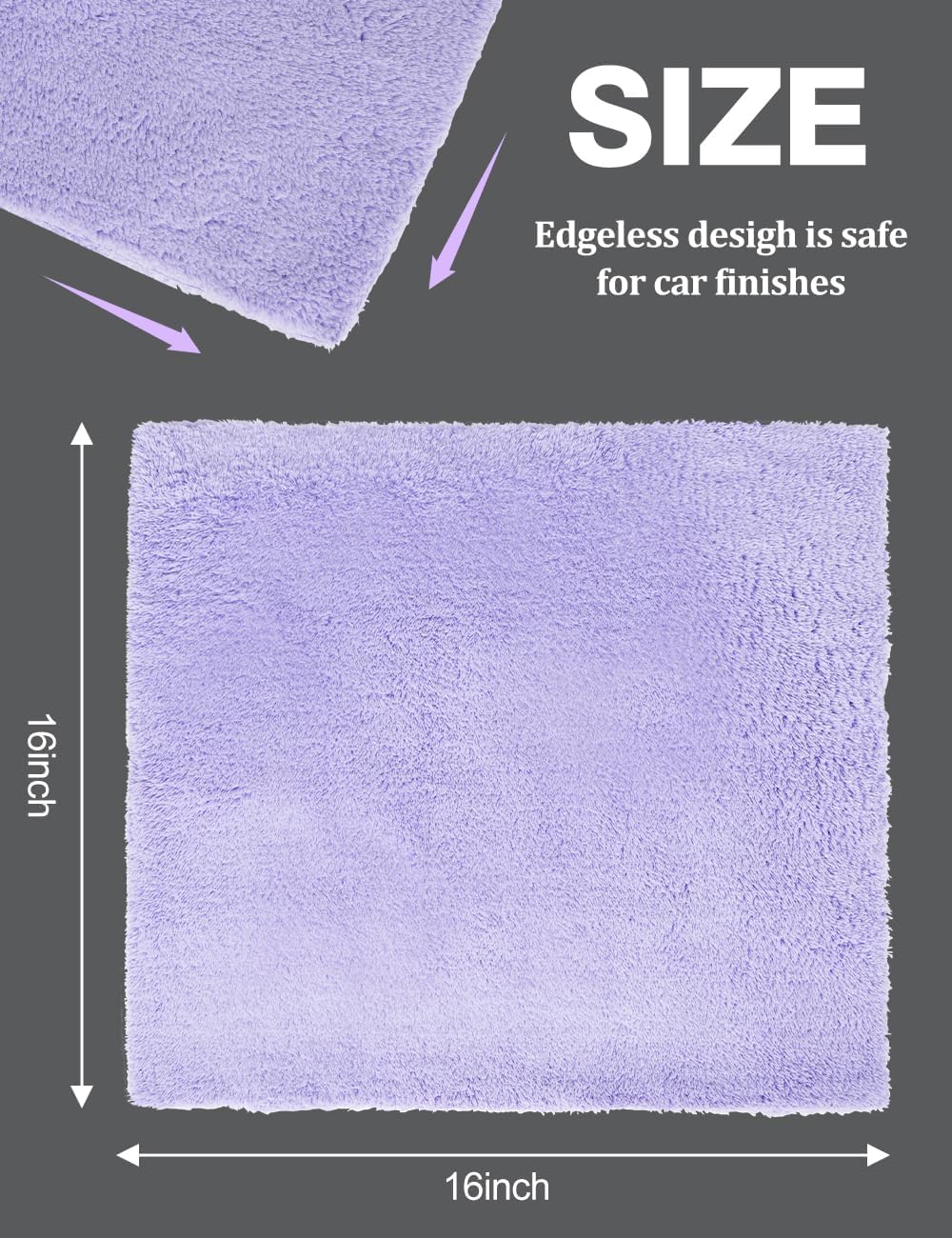 👍️【Edgeless Safe Design】16in*16in size, with large ultrasonic cut surface design, no hard knots on the edge of the towel, It not only provides effective cleaning power for your car, but also protects your car’s paint surface from scratches, provide you with double convenience, make you fall in love with car washing.