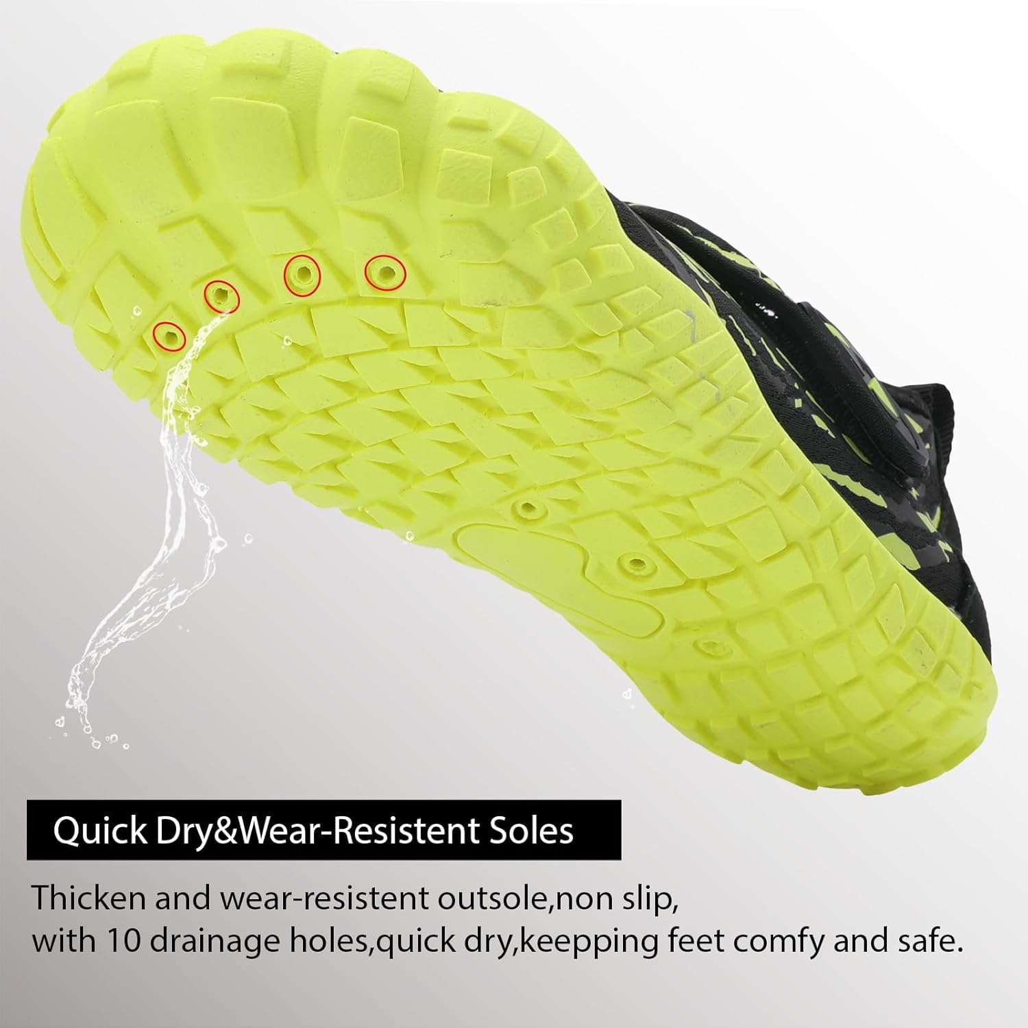 the soles of these kids water shoes with 10 drainage holes,quick drying and keepping your feets comfy and cool