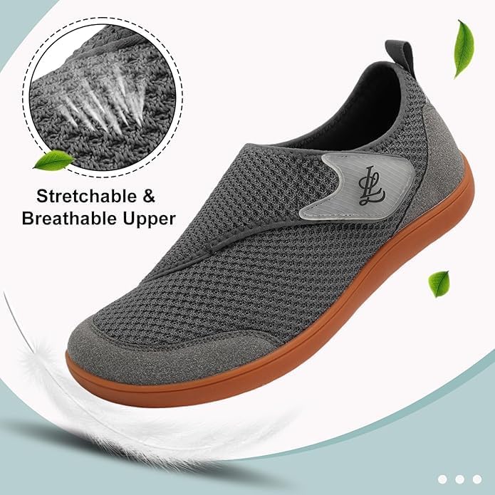 L-RUN Mens Wide Walking Shoes Breathable Barefoot Shoe Wide Width Feet Adjustable Zero Drop Shoes Non-Slip Casual Sneakers
