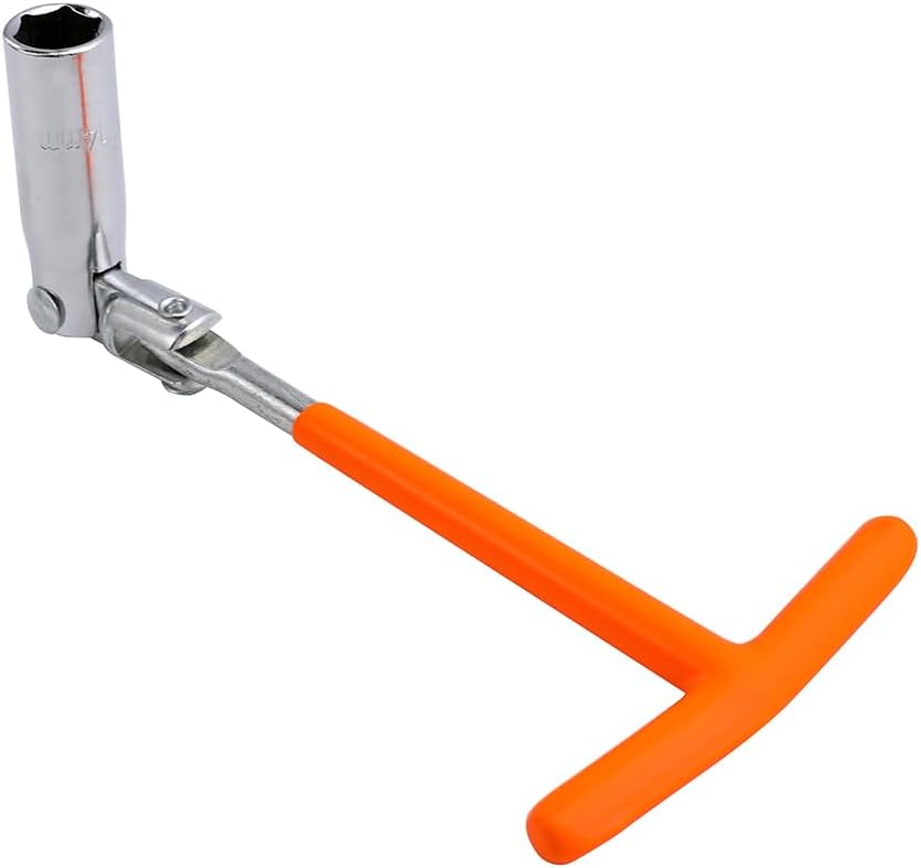 Lawazim Spark Plug T-Wrench -14mm Orange- Universal Joint Wrench with Ergonomic Handle -for Automotive Engine Maintenance, Car Repair, Spark Plug Removal and Installation -for DIY and Professional Use