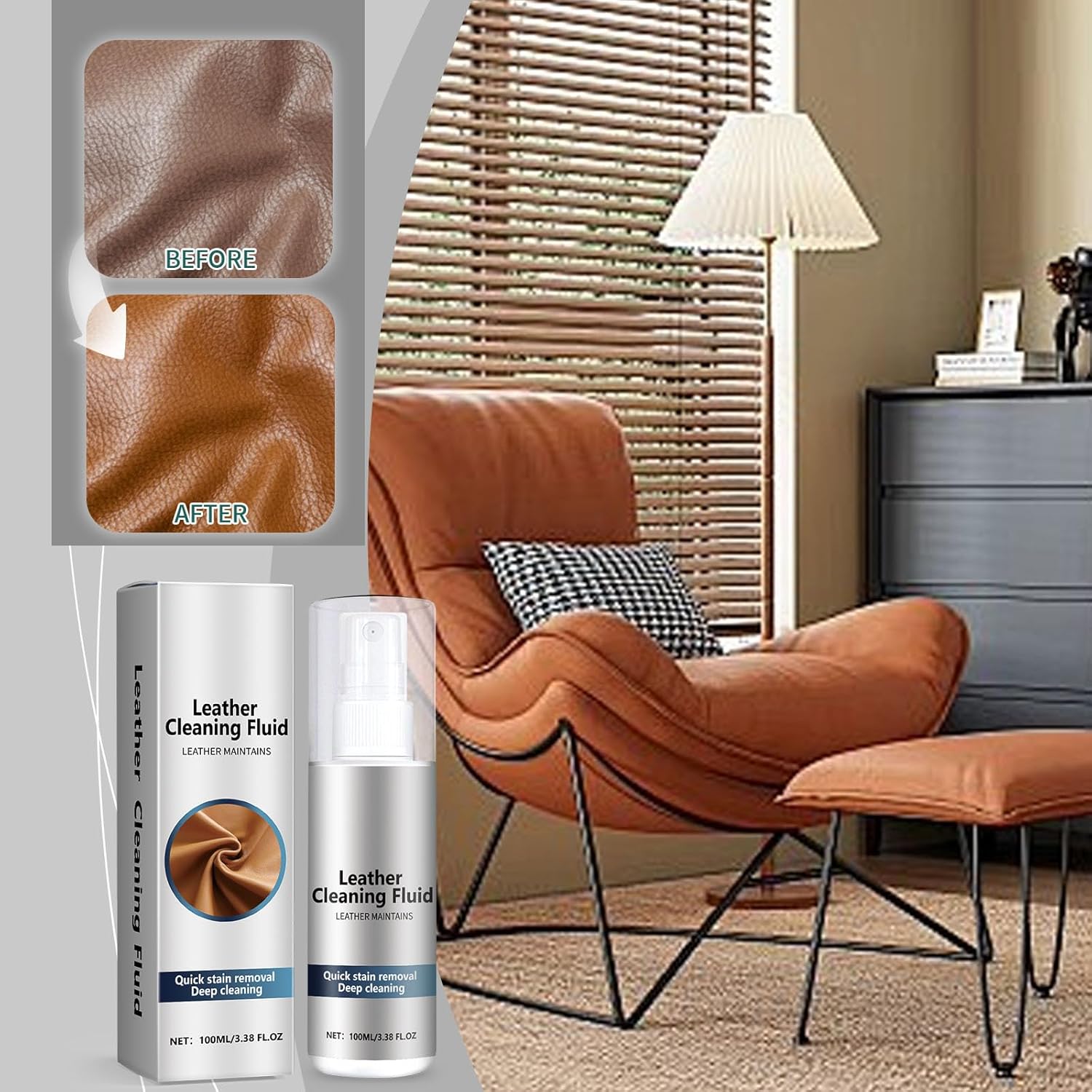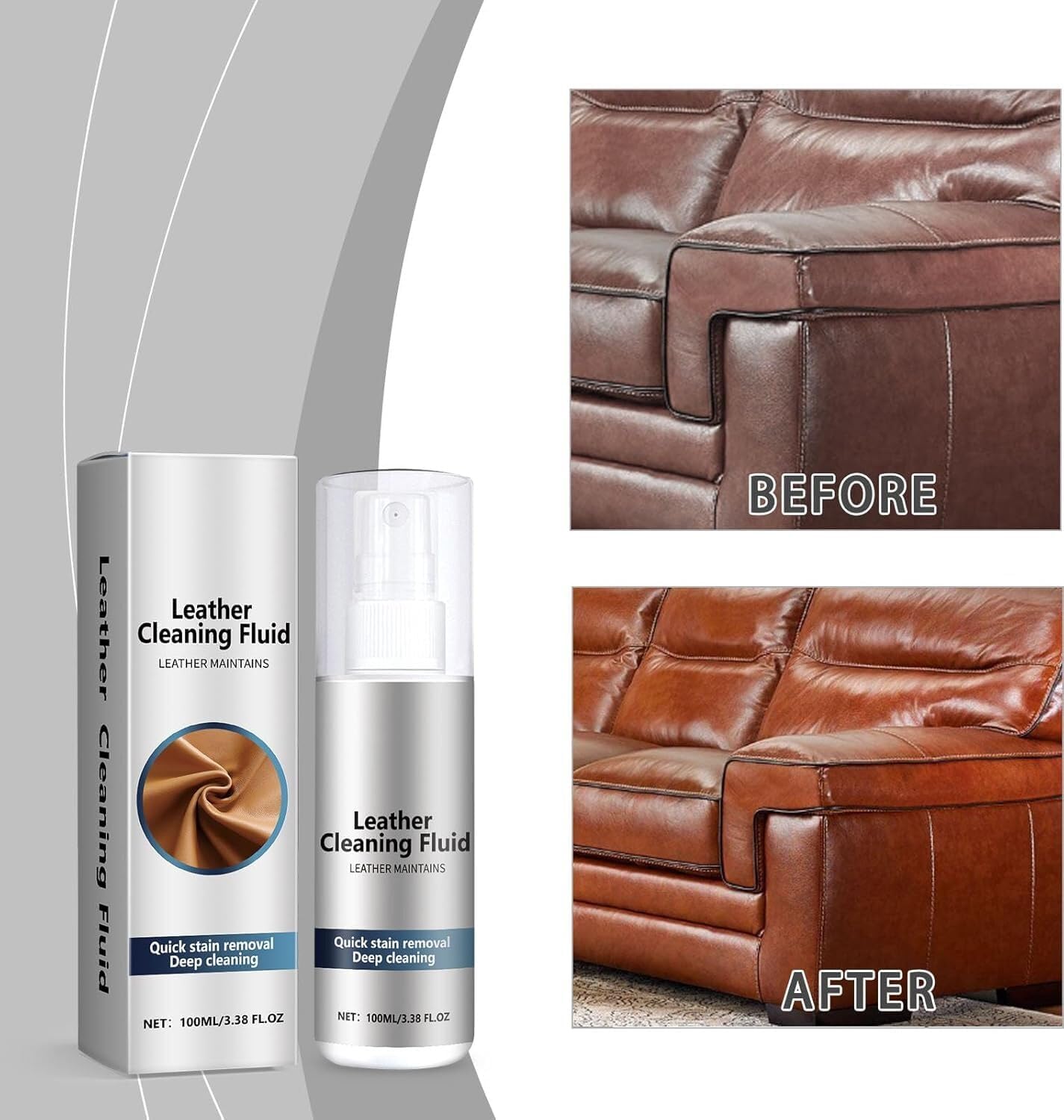 Effective Stain Removal: Quickly removes stubborn stains and dirt from leather, restoring its fresh, clean appearance without leaving any residue