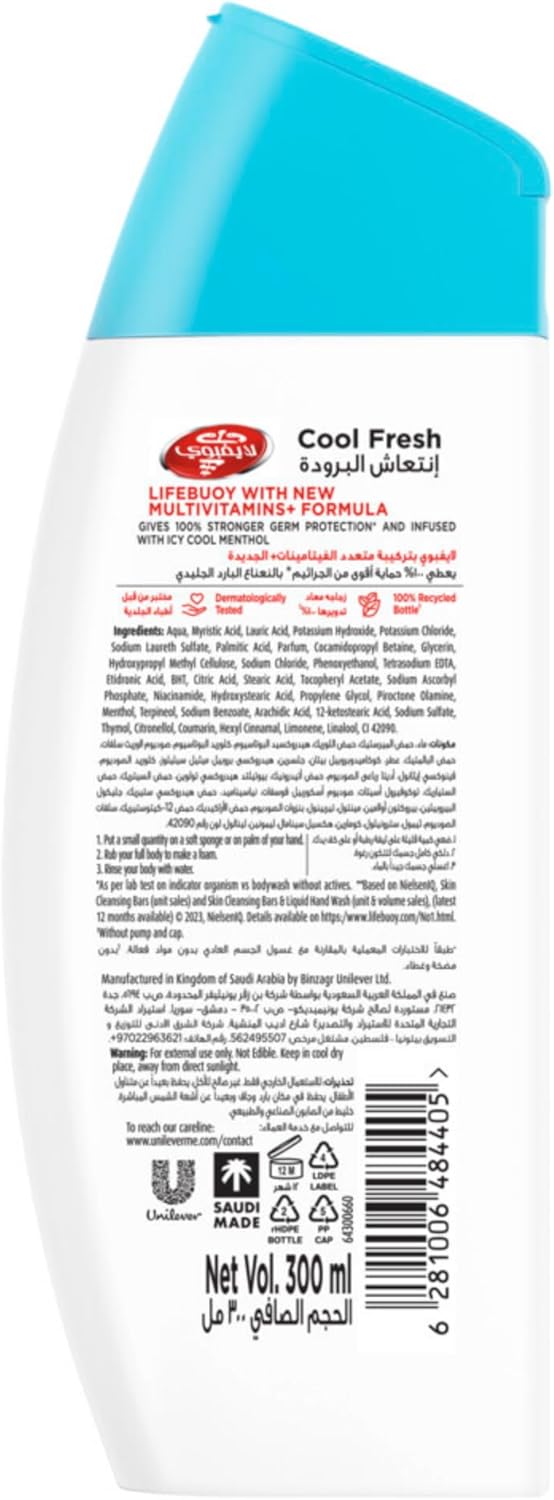 LIFEBUOY Antibacterial Body Wash, Cool Fresh, for 100% stronger germ protection and hygiene, 12 hour freshness, 300ml