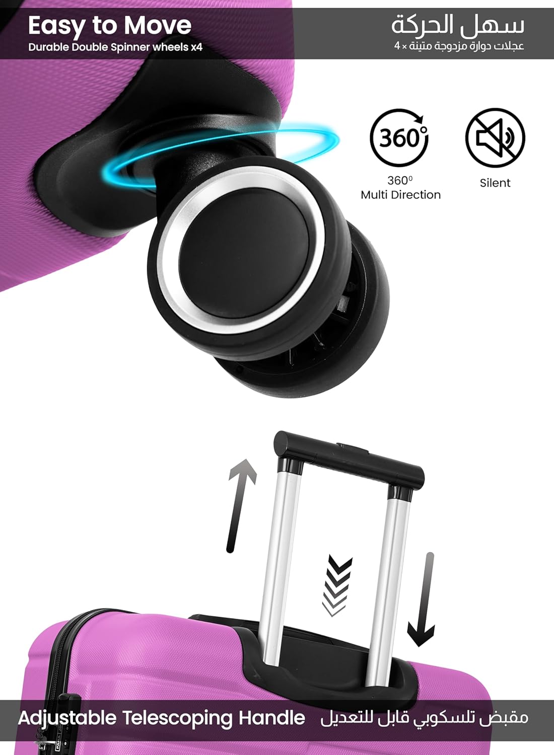 Features Multi-Directional Spinner Wheels To Make Traveling Easy Designed To Make Travelling Easier Soft Grip Handle For Easy Lifting Made Of Extra-Thick ABS For Enhanced Strength And Durability The Zip Fastening Ensures The Safety Of Your Things And Reduces Fall Out