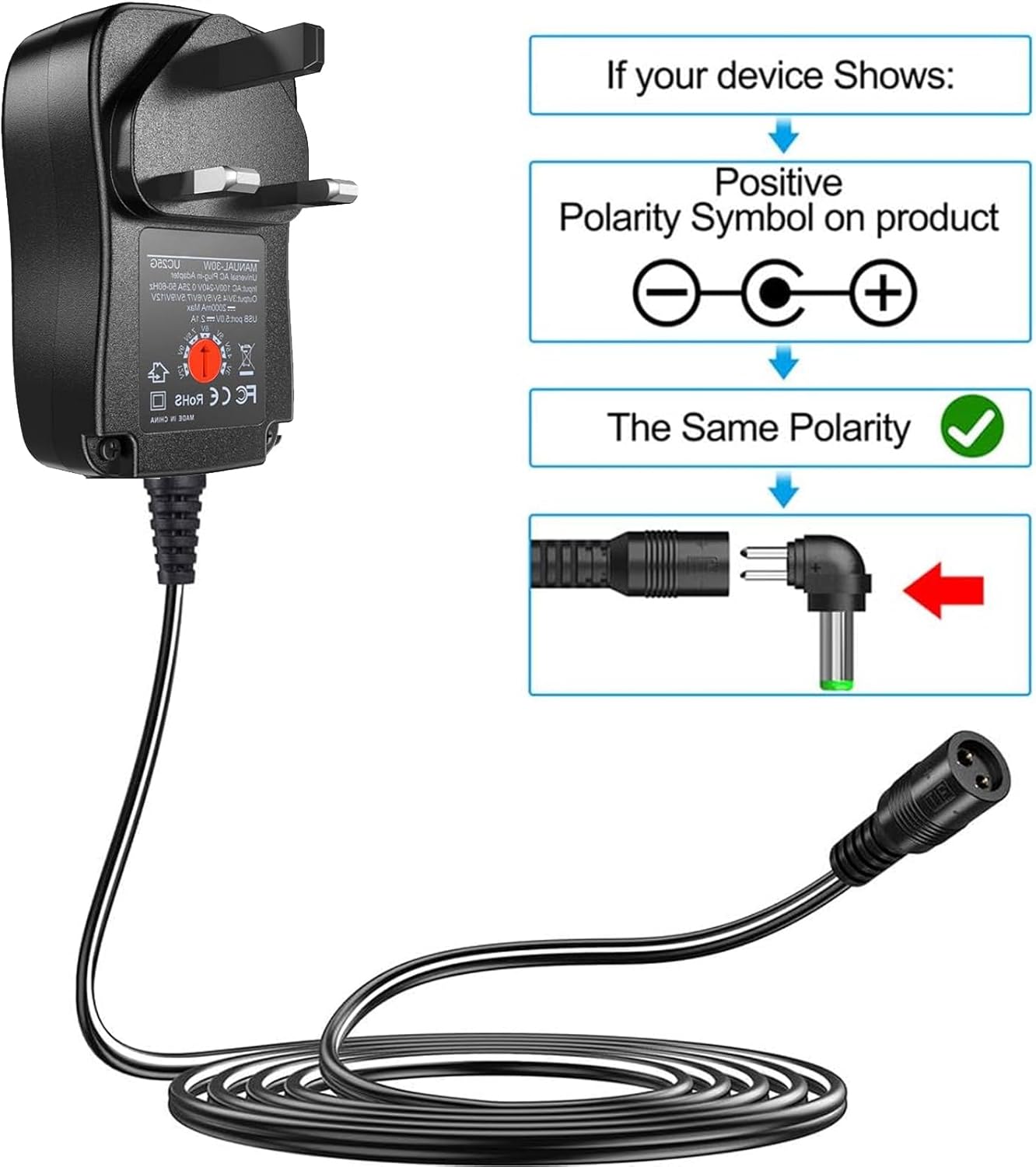 LinJie 12W Universal Multi Voltage Ac/Dc Adapter Switching Power Supply With 9 Selectable Adapter Plugs, Suitable For 3 V To 12 V Household Electronics And Led Strip, 022901