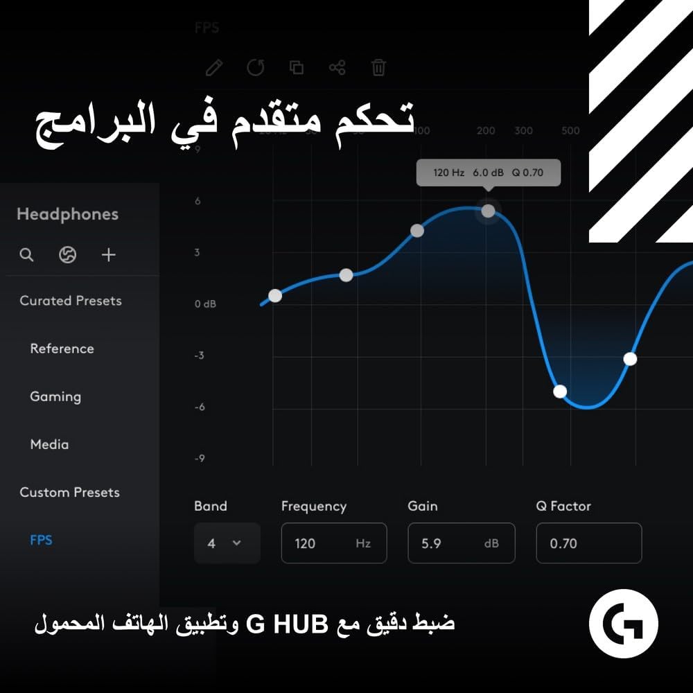 Advanced G HUB and Mobile App Control: fine tune your gaming audio experience with 10-band parametric EQ, mic settings, noise reduction, stream output mixing and more