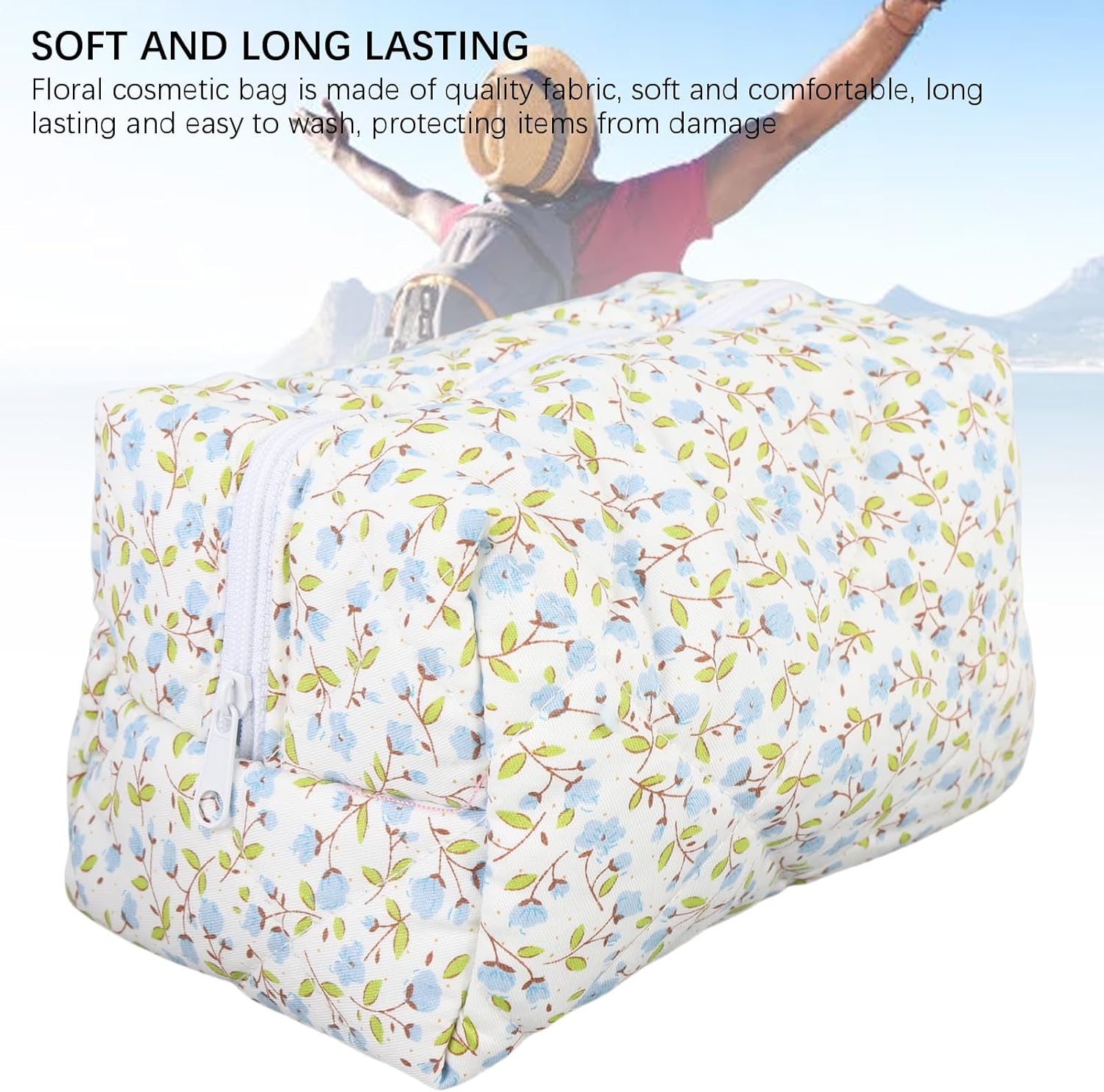 SOFT AND LONG LASTING: Floral cosmetic bag is made of quality fabric, soft and comfortable, long lasting and easy to wash, protecting items from damage