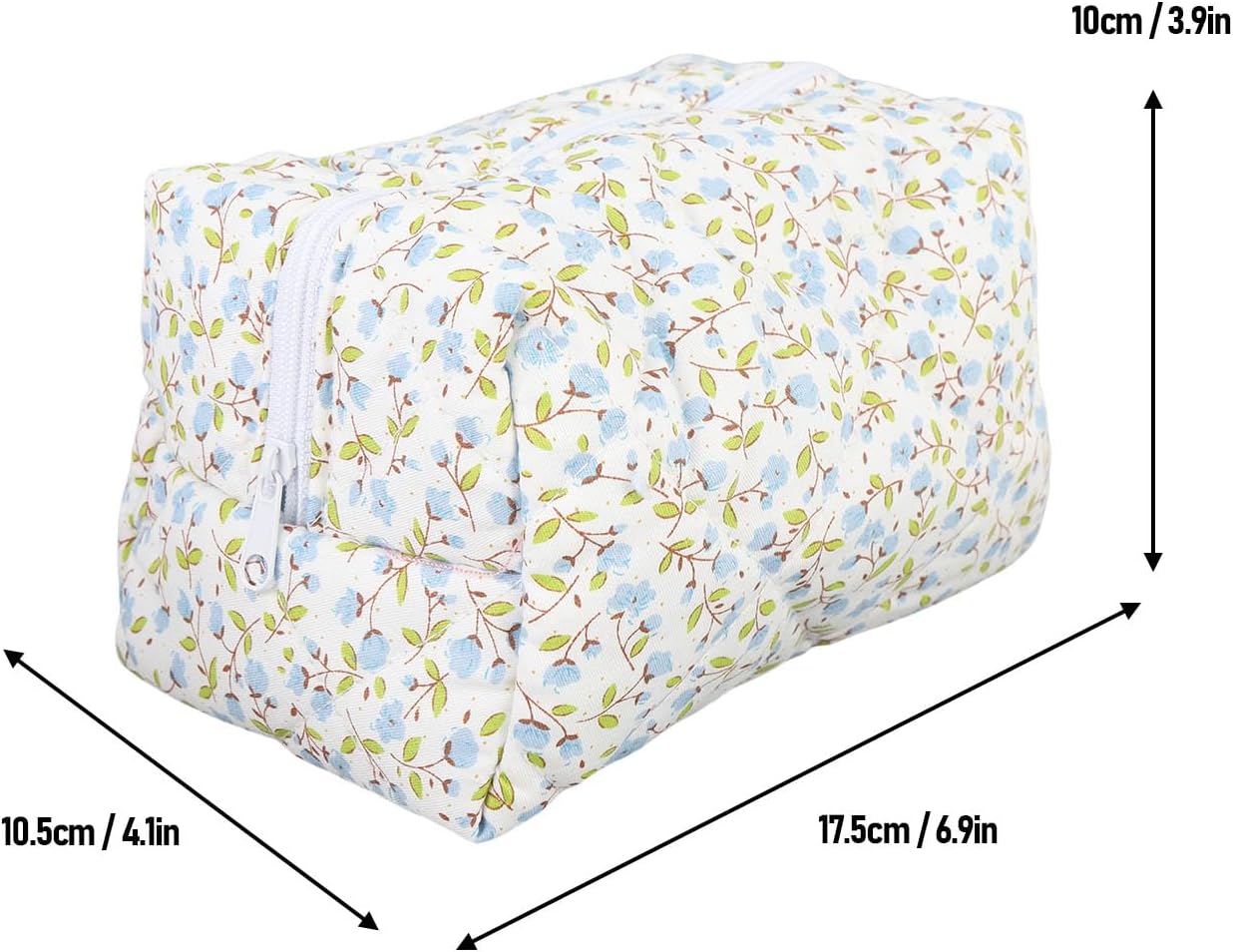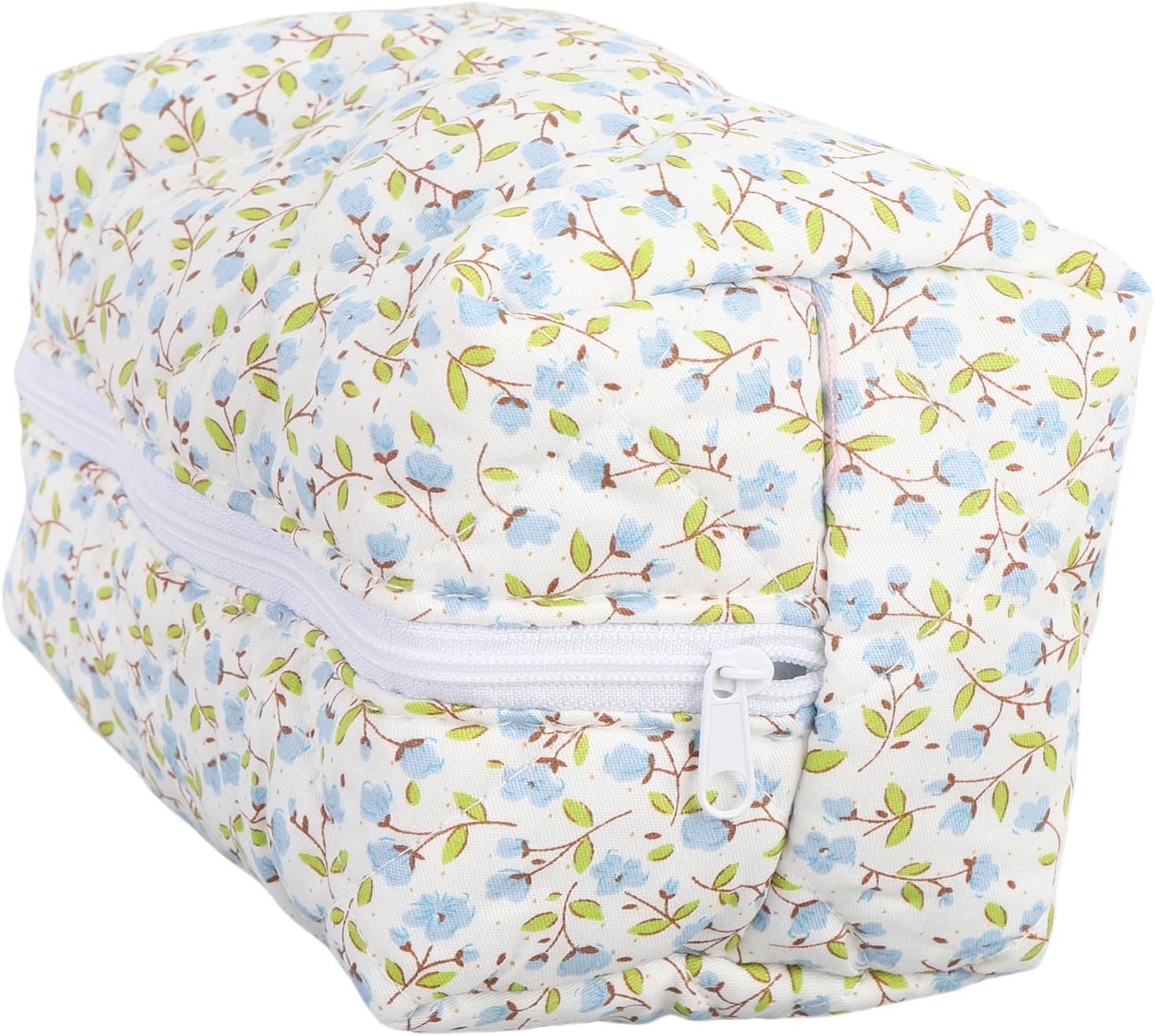 Luqeeg Quilted Makeup Bag with Zip, Floral Cosmetic Pouch, Soft Comfortable Travel Toiletry Organizer Makeup Brushes Storage for Storing Cosmetics Skin Care Products People Items (Blue)