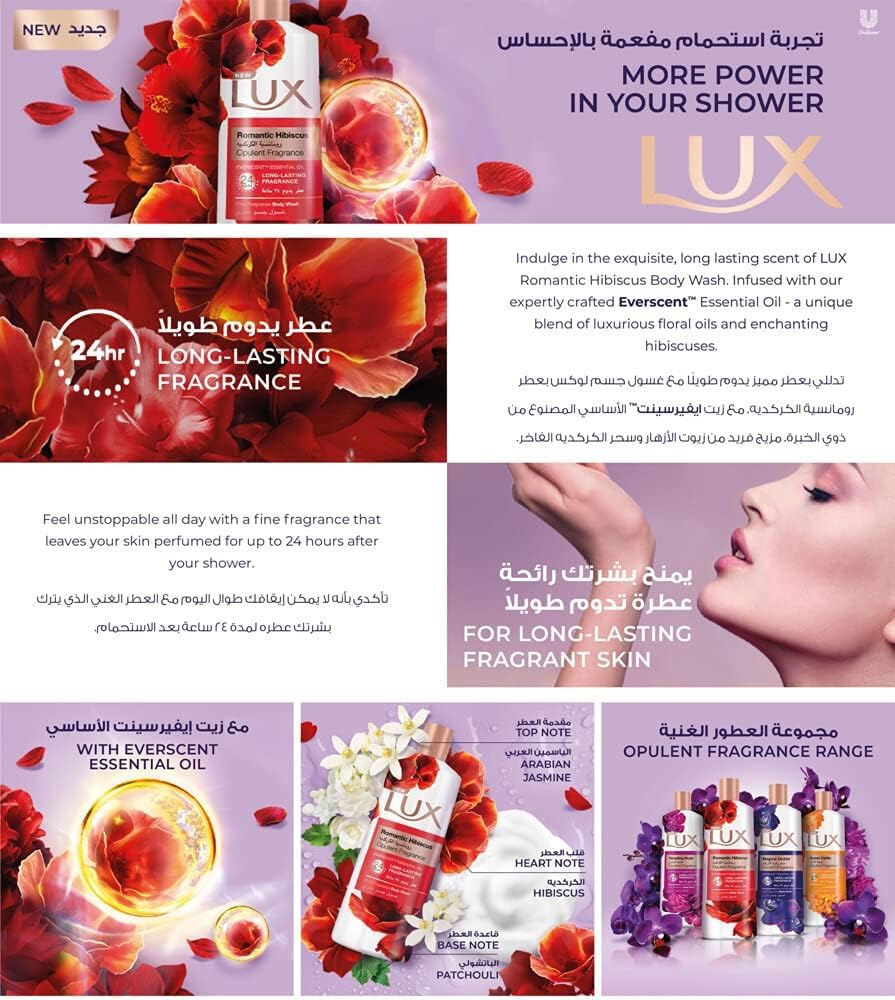 Be the first to review “Lux Opulent Fragrance Body Wash, Romantic Hibiscus, 30H Long-Lasting Scent, with Everscent Essential Oil, 500ml” Cancel reply