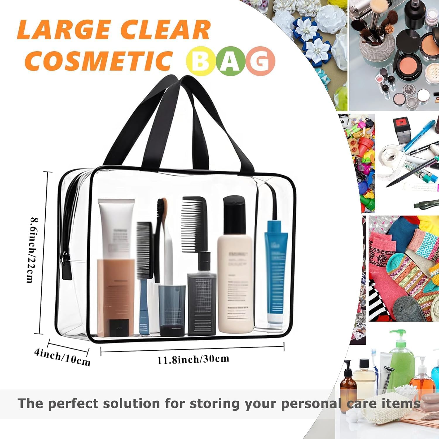 CAPACITY APPLICATIONS: 2 x large transparent shoulder bag, 12″x 4″x 9″(31x23x10cm). High-quality toilety bag in travel, toiletry bag to gym, beach bag to the beach camping, bathroom organization. Spacious interior to fit makeup accessories for men and women.