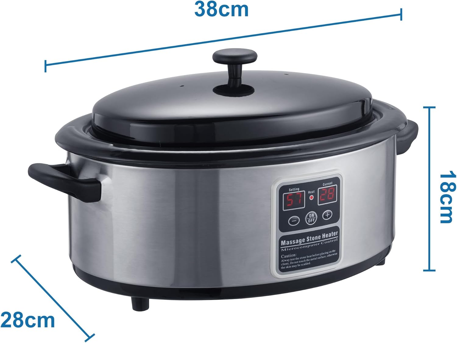 This professional 6 quart stone heating unit maintains a constant even temperature so your massage stones are always ready to use This is an ideal unit for both hot stone massage and warm stone massage It is equipped with UK Plug The Stone Heater is very easy to use Fill the bowl with cold water and adjust the temperature desired for your treatment Maintain the temperature via the temperature gage until your treatment is complete The heater is made of stainless steel and the lid is made from aluminum which makes it long lasting rust free and over all efficient When you buy this heater a free additional spoon to remove the stones from the water will be included