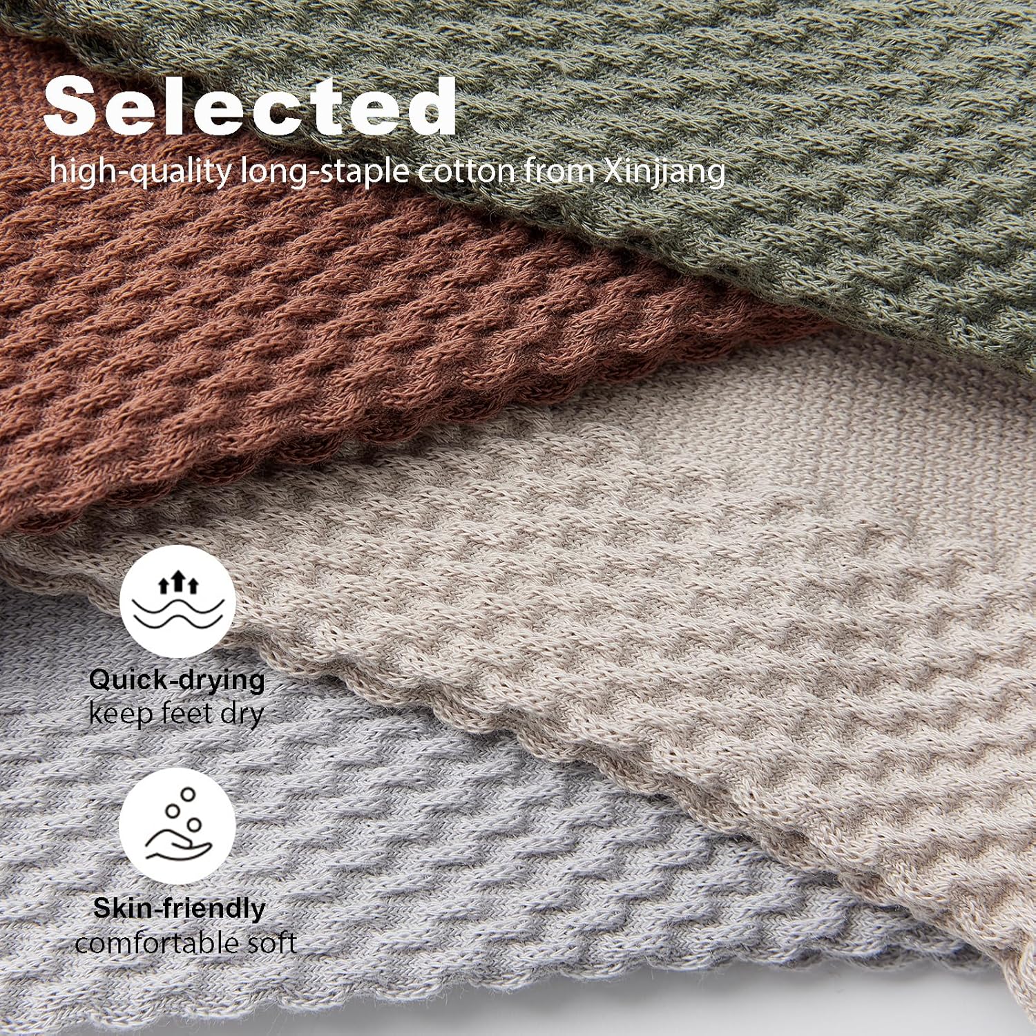 infino Men’s Mid-Calf Socks 5-Pack offers exceptional comfort and performance for everyday wear. Made from high-quality ecological cotton with a ≥180-day growth cycle, ≥290mm fiber length, and ≥12h average sunlight exposure, these socks are incredibly soft and durable. Featuring antibacterial properties that are certified effective against 99% Staphylococcus, 97% White Streptococcus, and 92% E. coli, these socks keep your feet fresh and odor-free all day long. The breathable mesh design allows for optimal air circulation and moisture-wicking, preventing sweaty and stuffy feet. With a Grade IV anti-pilling rating, these socks resist pilling and maintain their quality even after multiple washes. The no-seam toe prevents rubbing and discomfort, while the elastic cuff ensures a secure fit. The massage sole provides gentle pressure relief, making these socks perfect for sports, casual activities, and business wear. Suitable for all seasons, these socks are designed to fit most men and are compatible with various shoe types, including sports shoes, casual shoes, and business shoes. Care instructions: Machine washable for easy maintenance. Package includes 5 pairs of socks in assorted colors: White, Light Gray, Army Green, Dark Gray, and Black.