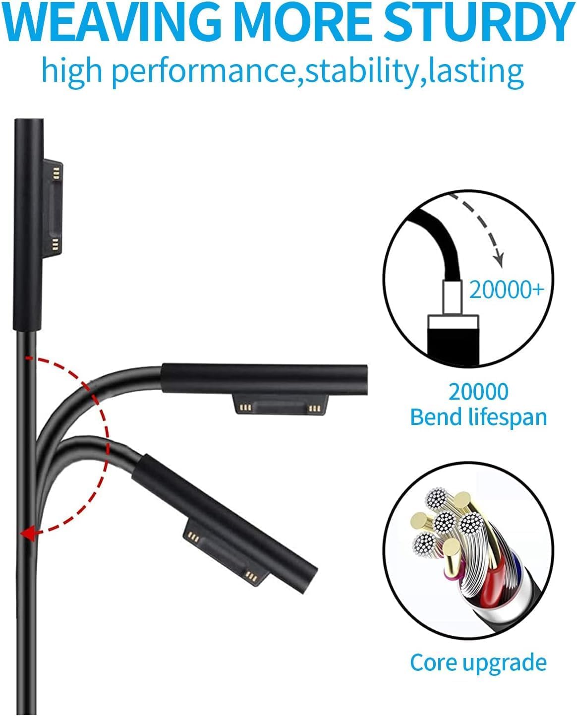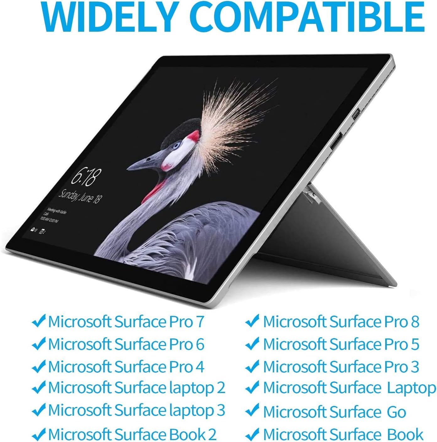 🔋 For Microsoft Surface Pro Charger supply compatible Models: Surface Pro7, Surface Pro 6, Surface Pro 5, Surface Pro 4, Surface Pro 3, Surface Laptop 1/2/3, Surface Book 1/2, Surface Go 1/2.