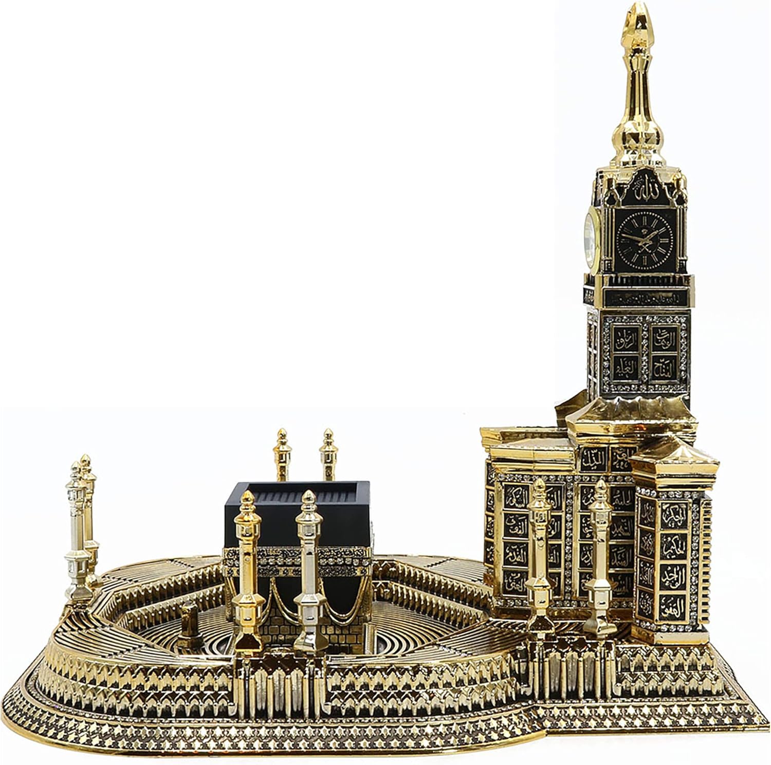 Transform your space with the Modefa Islamic Table Decor, a stunning replica of the Kaba and Clock Tower, crafted to reflect the heart of Islamic art and tradition—perfect for anyone seeking elegant Islamic decorations for home. Adorned with the 99 Names of Allah (Asma Ul Husna) in intricate Arabic calligraphy and sparkling rhinestones, this showpiece blends spirituality and luxury. Whether you display this beautiful Muslim decor in a modern Islamic living room, Islamic prayer room decor, Eid Mubarak table decor, or a beautiful Muslim gift for men and women, it’s designed to uplift your home and heart as a symbol of faith and beauty, making it the best Islamic gift for any occasion. Crafted in Turkey with care, this elegant Islamic sculpture includes a functional clock and a free car hanger—ideal for your vehicle or as an muslim car decoration alternative, those wanting Allah name for car pieces. The detailed craftsmanship makes it a treasured item for those looking for Eid gifts, Ramadan gifts, or Hajj Mubarak and Umrah gifts. Perfect for all occasions—Ramadan gifts, Eid gifts for men and women, housewarming gifts for Muslim family, or as a daily reminder of unity and divine presence in your masjid decor or Muslim prayer corner. Its ornate design and symbolic meaning make it one of the best Islamic gifts available. Whether you’re searching for Muslim home decor, Islamic office decor, Islamic table decor, or Arabic gifts, this timeless Islamic sculpture, is crafted with high-quality plastic and resin, embodies faith, tradition, and modern elegance. Add beauty and barakah to your home with this meaningful Islamic showpiece from Modefa USA.