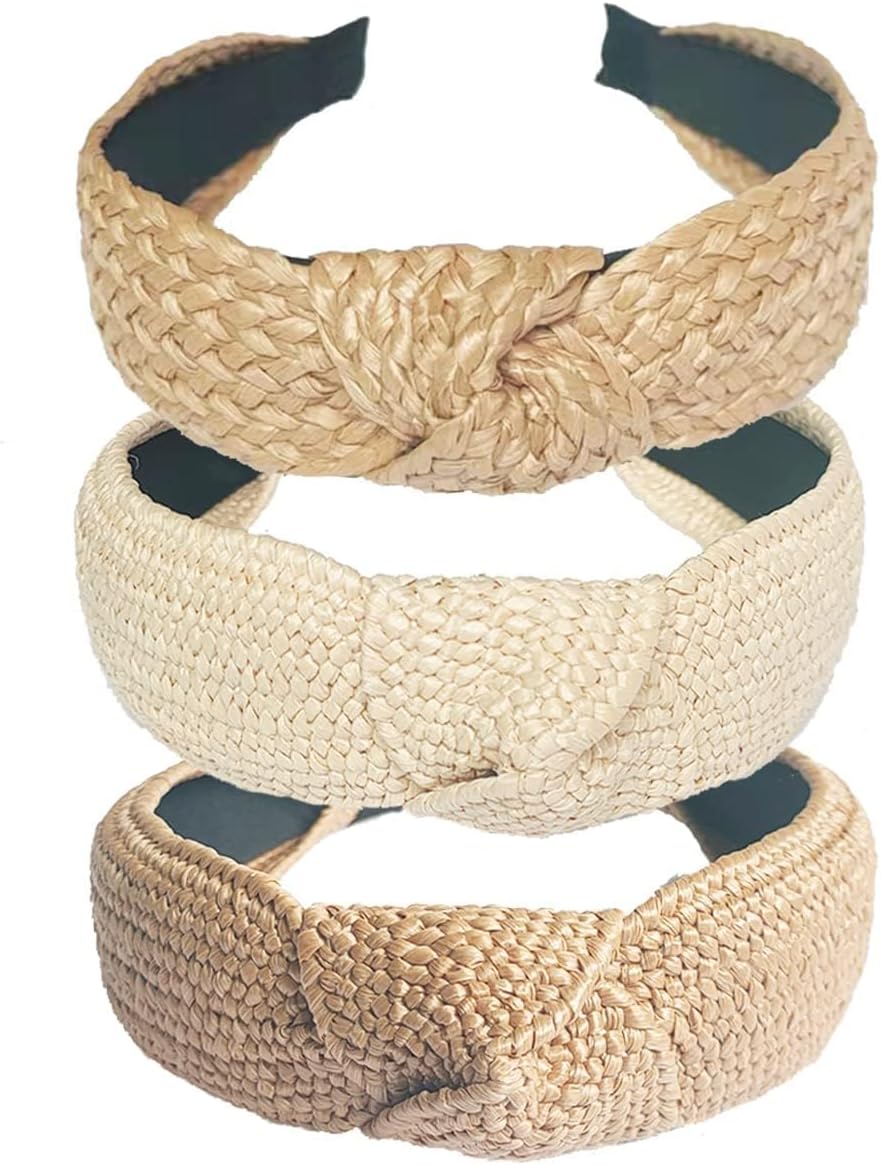 Joyzzz Head Bands, 3 Pack Bohemian Straw Headbands for Women, Woven Rattan Wide Hair Bands Fashion Accessories, Stylish Hair Band for Summer Outfits
