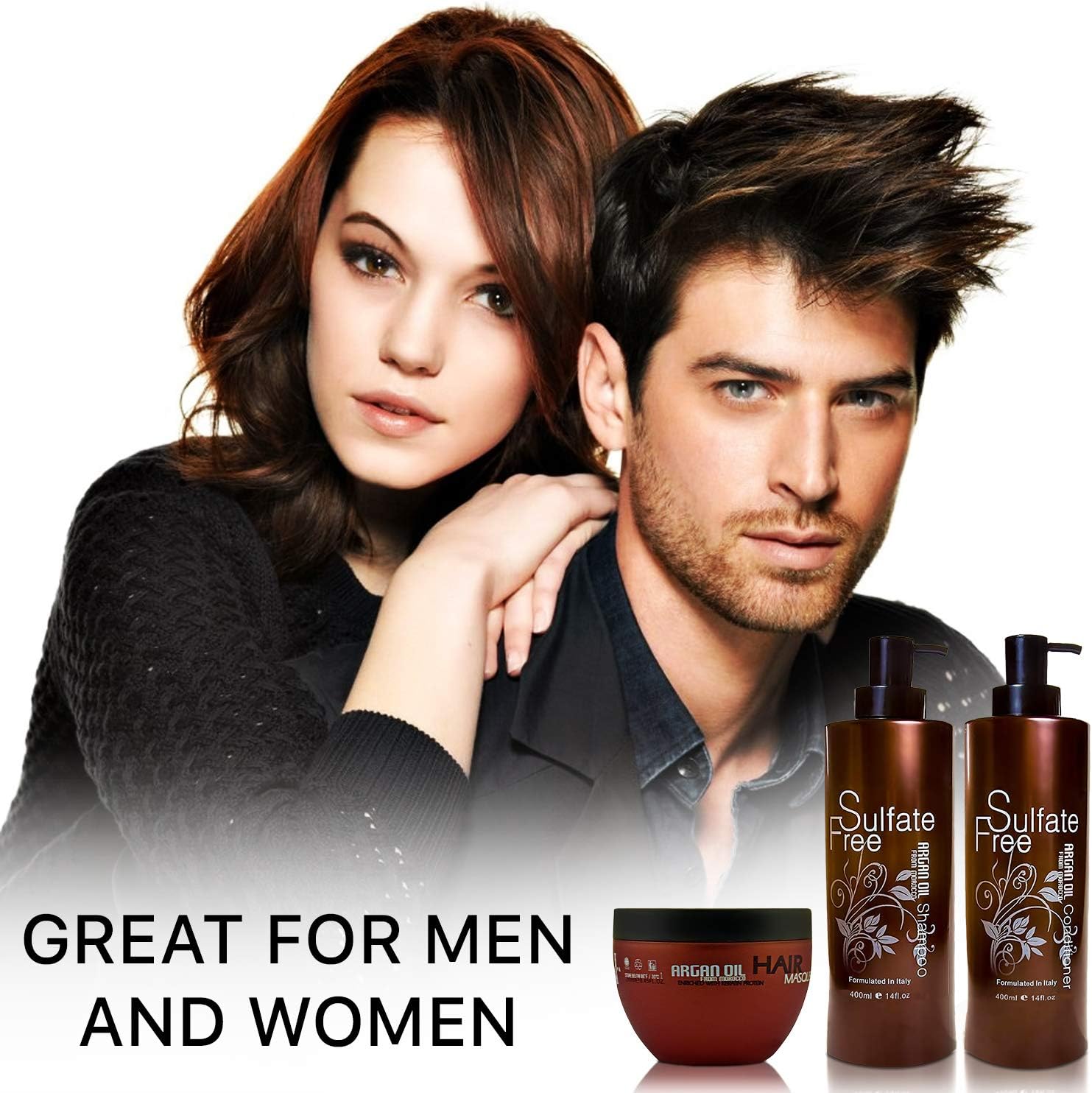 Moroccan Argan Oil Shampoo Conditioner and Mask Set, Sulfate Free for Damaged, Dry, Curly or Frizzy Hair – Thickening for Fine/Thin Hair Safe for Color and Keratin Treated Hair